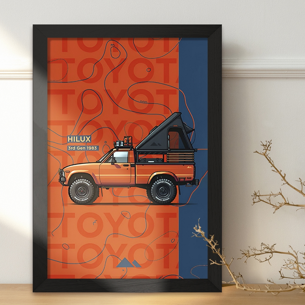 تابلو یا قاب عکس هایلوکس (Hilux) خندالو در ابعاد مختلف با استفاده از بهترین برند پروفیل پی وی سی دو سانتی متری بسیار مرغوب، تولید شده اند و در مونتاژ و نصب آنها نهایت دقت در قرارگیری هر چه دقیق تر لبه ها به یکدیگر صورت گرفته است. همچنین در پشت قاب ها گیره ای برای اتصال راحت به دیوار تعبیه شده است. چاپ طرح تابلوی هایلوکس (Hilux) با بالاترین کیفیت بوسیله چاپگرهای دیجیتال شش رنگ و کاغذ با کیفیت عکاسی انجام شده و بر روی آن شیشه ای با کیفیت و شفاف در سطح قاب قرار گرفته که از کاغذ عکس محافظت میکند. بسته بندی تابلوها جعبه های مقاوم و محکمی بوده که علاوه بر محافظتی که از بدنه قاب می کند، ظاهر جذابی دارد و تابلوی هایلوکس (Hilux) را بدل به محصولی مناسب هدیه کرده است. تابلوهای خندالو با تنوع طرحی بسیار بالا شامل تابلو های دکوراتیو قابل استفاده در اتاق کودک، محل کار و منازل می باشد که سلیقه هر مخاطبی را پوشش می دهد، ضمن اینکه امکان تعویض عکس موجود در قاب وجود داشته و می توان عکس های خانوادگی و … را نیز در آن قرار داد.