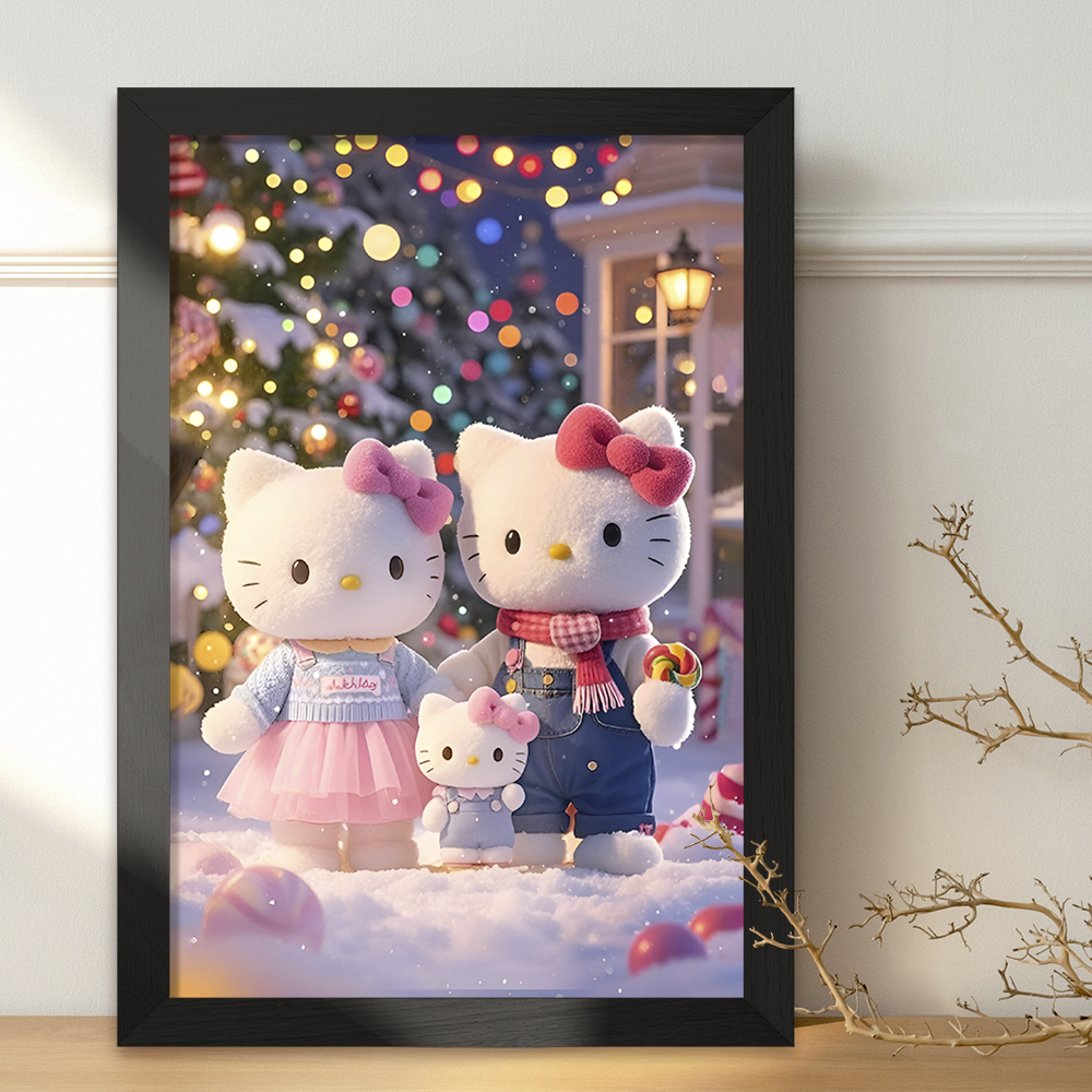 تابلو یا قاب عکس هلو کیتی خندالو در ابعاد مختلف با استفاده از بهترین برند پروفیل پی وی سی دو سانتی متری بسیار مرغوب، تولید شده اند و در مونتاژ و نصب آنها نهایت دقت در قرارگیری هر چه دقیق تر لبه ها به یکدیگر صورت گرفته است. همچنین در پشت قاب ها گیره ای برای اتصال راحت به دیوار تعبیه شده است.