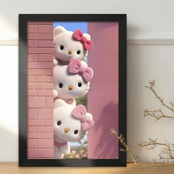 تابلو یا قاب عکس هلو کیتی خندالو در ابعاد مختلف با استفاده از بهترین برند پروفیل پی وی سی دو سانتی متری بسیار مرغوب، تولید شده اند و در مونتاژ و نصب آنها نهایت دقت در قرارگیری هر چه دقیق تر لبه ها به یکدیگر صورت گرفته است. همچنین در پشت قاب ها گیره ای برای اتصال راحت به دیوار تعبیه شده است.