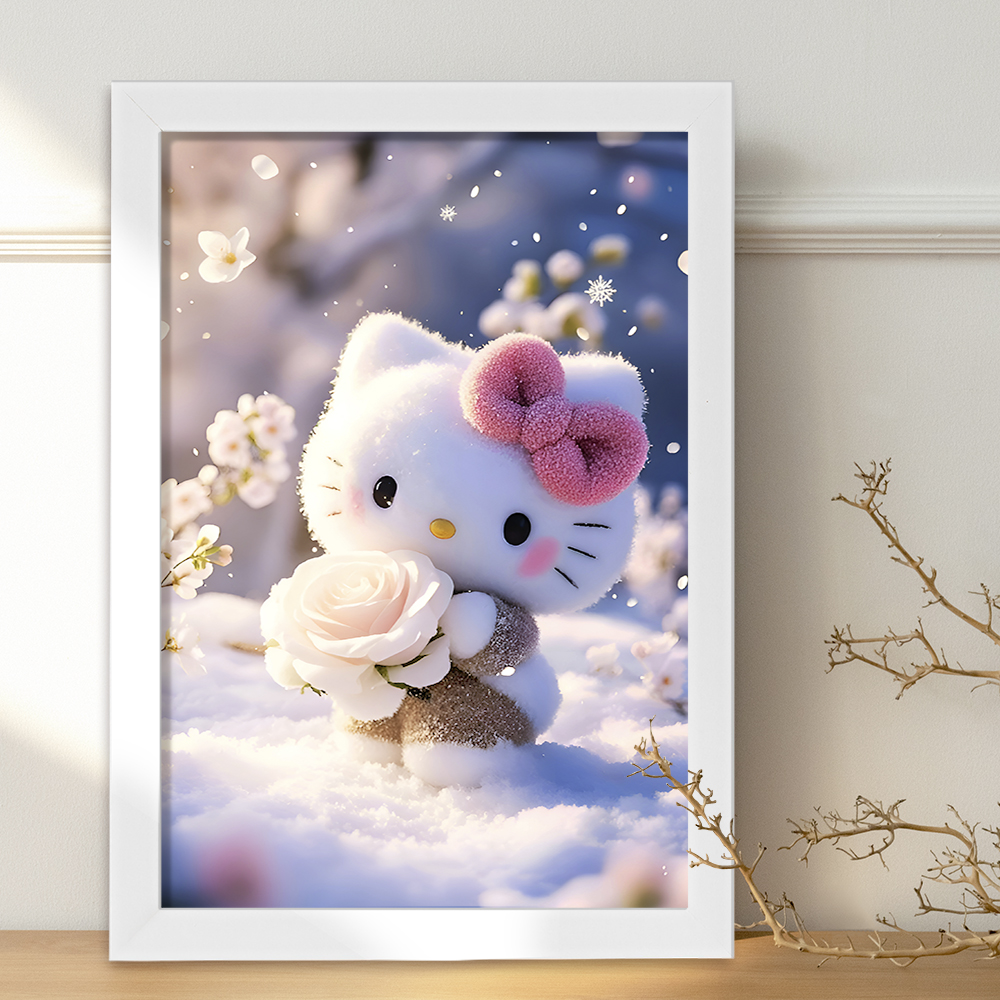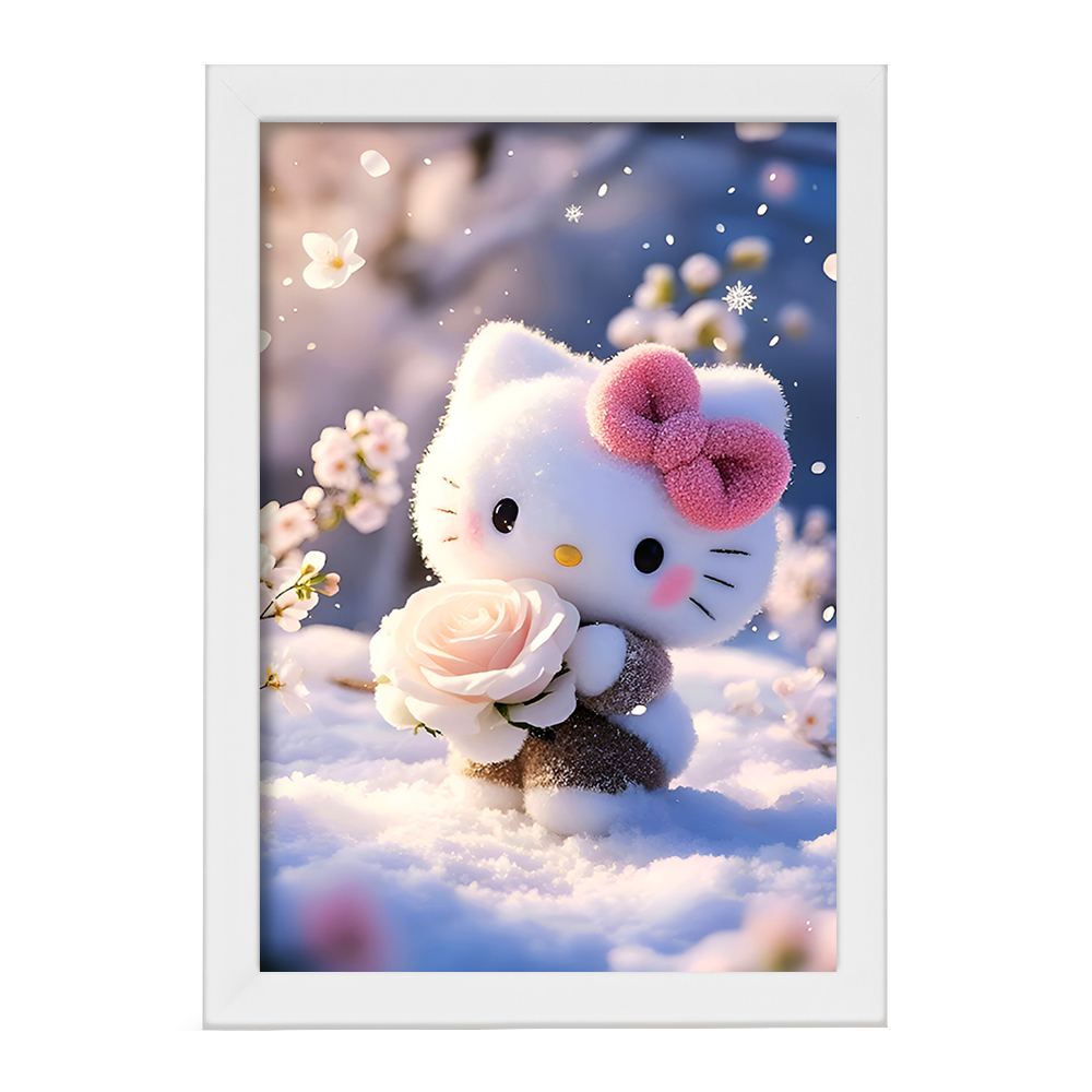 تابلو یا قاب عکس هلو کیتی خندالو در ابعاد مختلف با استفاده از بهترین برند پروفیل پی وی سی دو سانتی متری بسیار مرغوب، تولید شده اند و در مونتاژ و نصب آنها نهایت دقت در قرارگیری هر چه دقیق تر لبه ها به یکدیگر صورت گرفته است. همچنین در پشت قاب ها گیره ای برای اتصال راحت به دیوار تعبیه شده است.