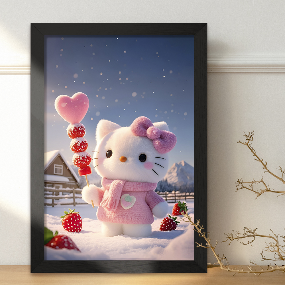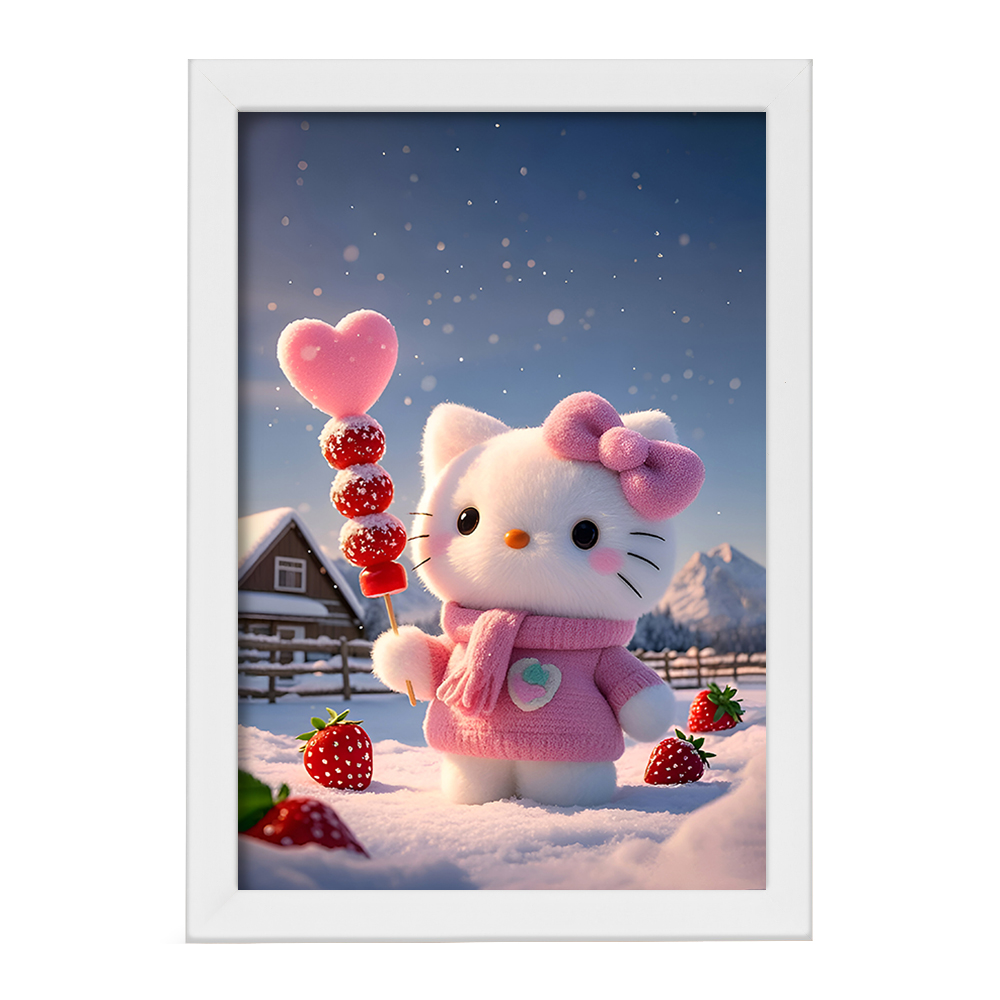 تابلو یا قاب عکس هلو کیتی خندالو در ابعاد مختلف با استفاده از بهترین برند پروفیل پی وی سی دو سانتی متری بسیار مرغوب، تولید شده اند و در مونتاژ و نصب آنها نهایت دقت در قرارگیری هر چه دقیق تر لبه ها به یکدیگر صورت گرفته است. همچنین در پشت قاب ها گیره ای برای اتصال راحت به دیوار تعبیه شده است.