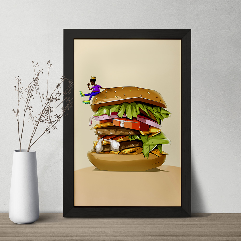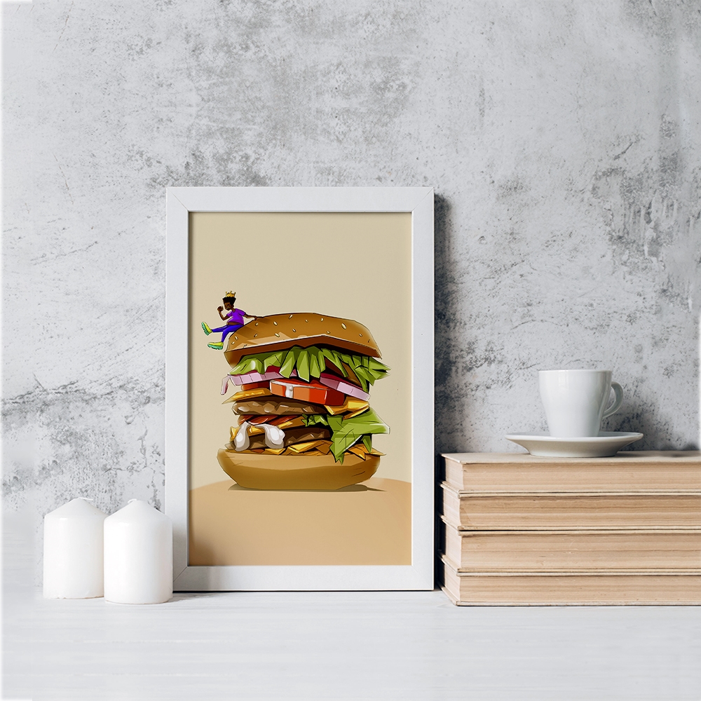 تابلو یا قاب عکس همبرگر خندالو در ابعاد مختلف با استفاده از بهترین برند پروفیل پی وی سی دو سانتی متری بسیار مرغوب، تولید شده اند و در مونتاژ و نصب آنها نهایت دقت در قرارگیری هر چه دقیق تر لبه ها به یکدیگر صورت گرفته است. همچنین در پشت قاب ها گیره ای برای اتصال راحت به دیوار تعبیه شده است.