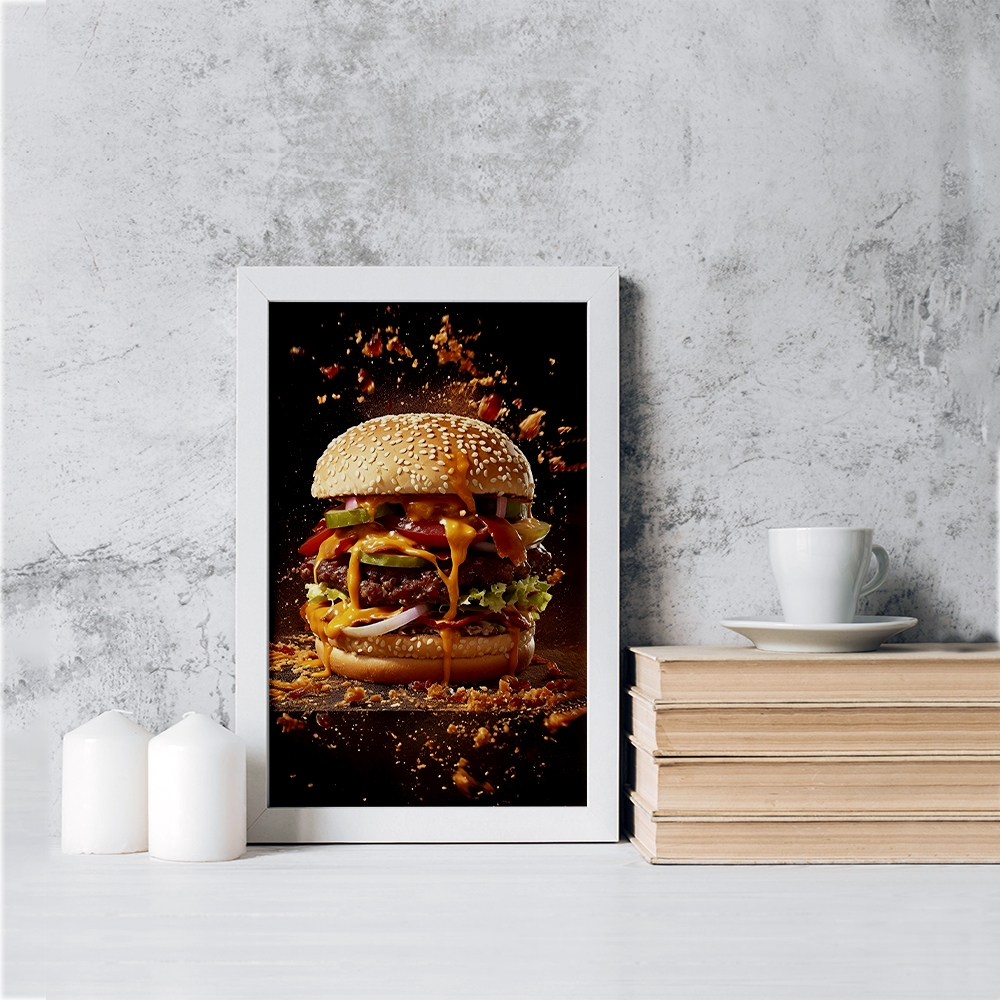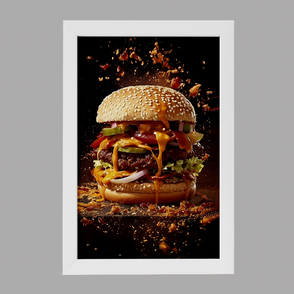 تابلو یا قاب عکس همبرگر خندالو در ابعاد مختلف با استفاده از بهترین برند پروفیل پی وی سی دو سانتی متری بسیار مرغوب، تولید شده اند و در مونتاژ و نصب آنها نهایت دقت در قرارگیری هر چه دقیق تر لبه ها به یکدیگر صورت گرفته است. همچنین در پشت قاب ها گیره ای برای اتصال راحت به دیوار تعبیه شده است.