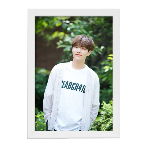 تابلو یا قاب عکس هوشی گروه سونتین Seventeen خندالو در ابعاد مختلف با استفاده از بهترین برند پروفیل پی وی سی دو سانتی متری بسیار مرغوب، تولید شده اند و در مونتاژ و نصب آنها نهایت دقت در قرارگیری هر چه دقیق تر لبه ها به یکدیگر صورت گرفته است. همچنین در پشت قاب ها گیره ای برای اتصال راحت به دیوار تعبیه شده است.