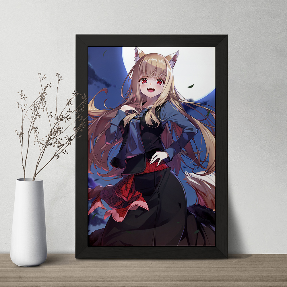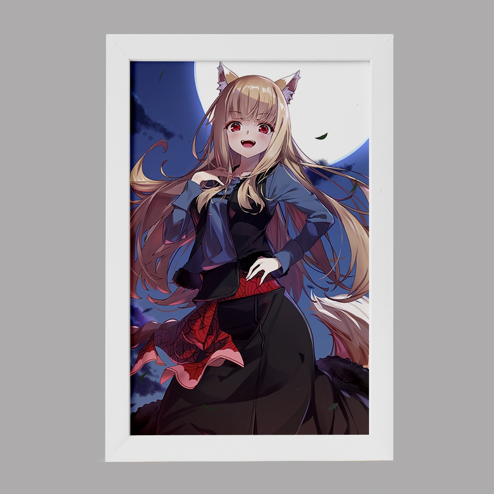 تابلو یا قاب عکس هولو انیمه ادویه و گرگ خندالو در ابعاد مختلف با استفاده از بهترین برند پروفیل پی وی سی دو سانتی متری بسیار مرغوب، تولید شده اند و در مونتاژ و نصب آنها نهایت دقت در قرارگیری هر چه دقیق تر لبه ها به یکدیگر صورت گرفته است. همچنین در پشت قاب ها گیره ای برای اتصال راحت به دیوار تعبیه شده است.