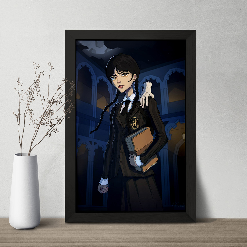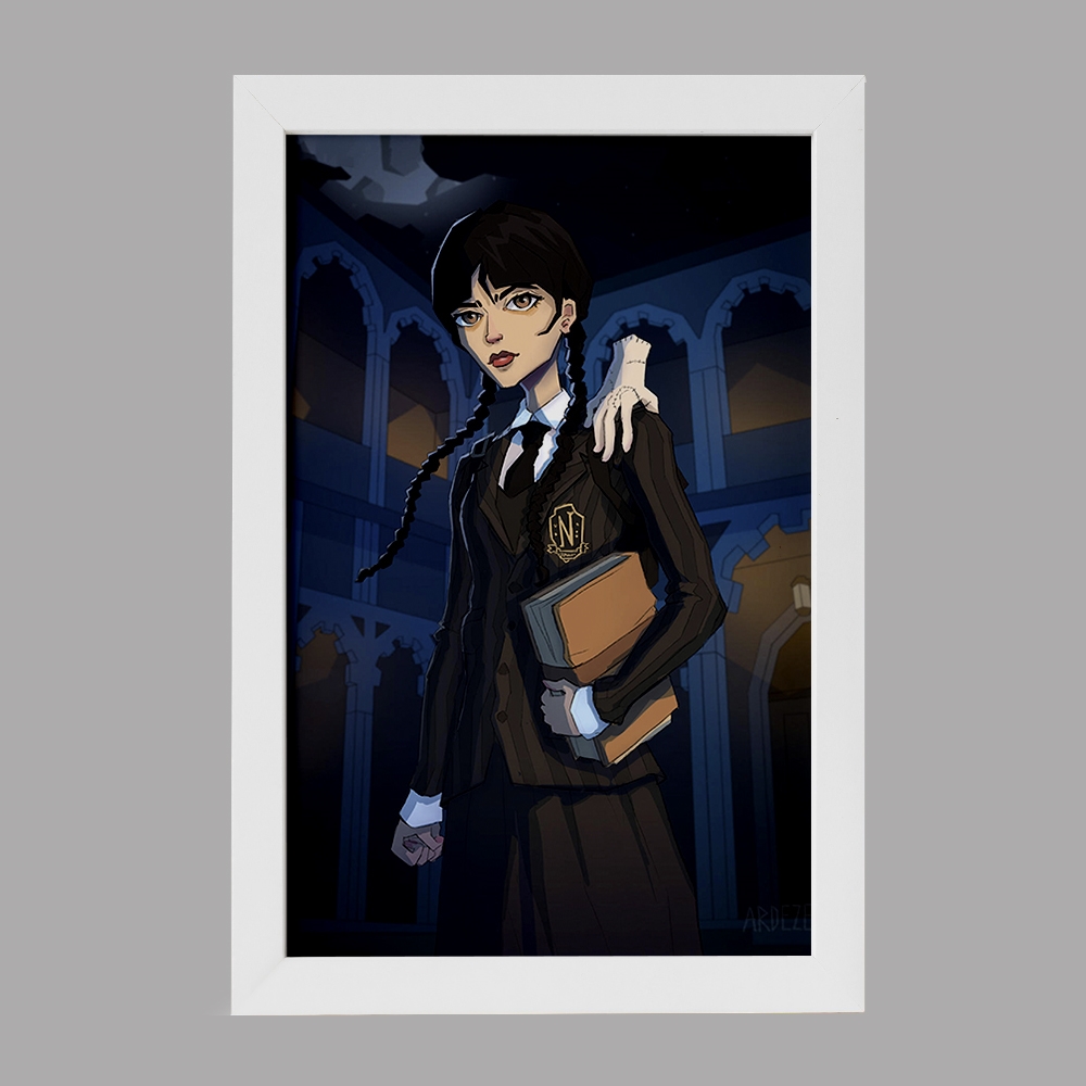 تابلو یا قاب عکس ونزدی (Wednesday) خندالو در ابعاد مختلف با استفاده از بهترین برند پروفیل پی وی سی دو سانتی متری بسیار مرغوب، تولید شده اند و در مونتاژ و نصب آنها نهایت دقت در قرارگیری هر چه دقیق تر لبه ها به یکدیگر صورت گرفته است. همچنین در پشت قاب ها گیره ای برای اتصال راحت به دیوار تعبیه شده است.