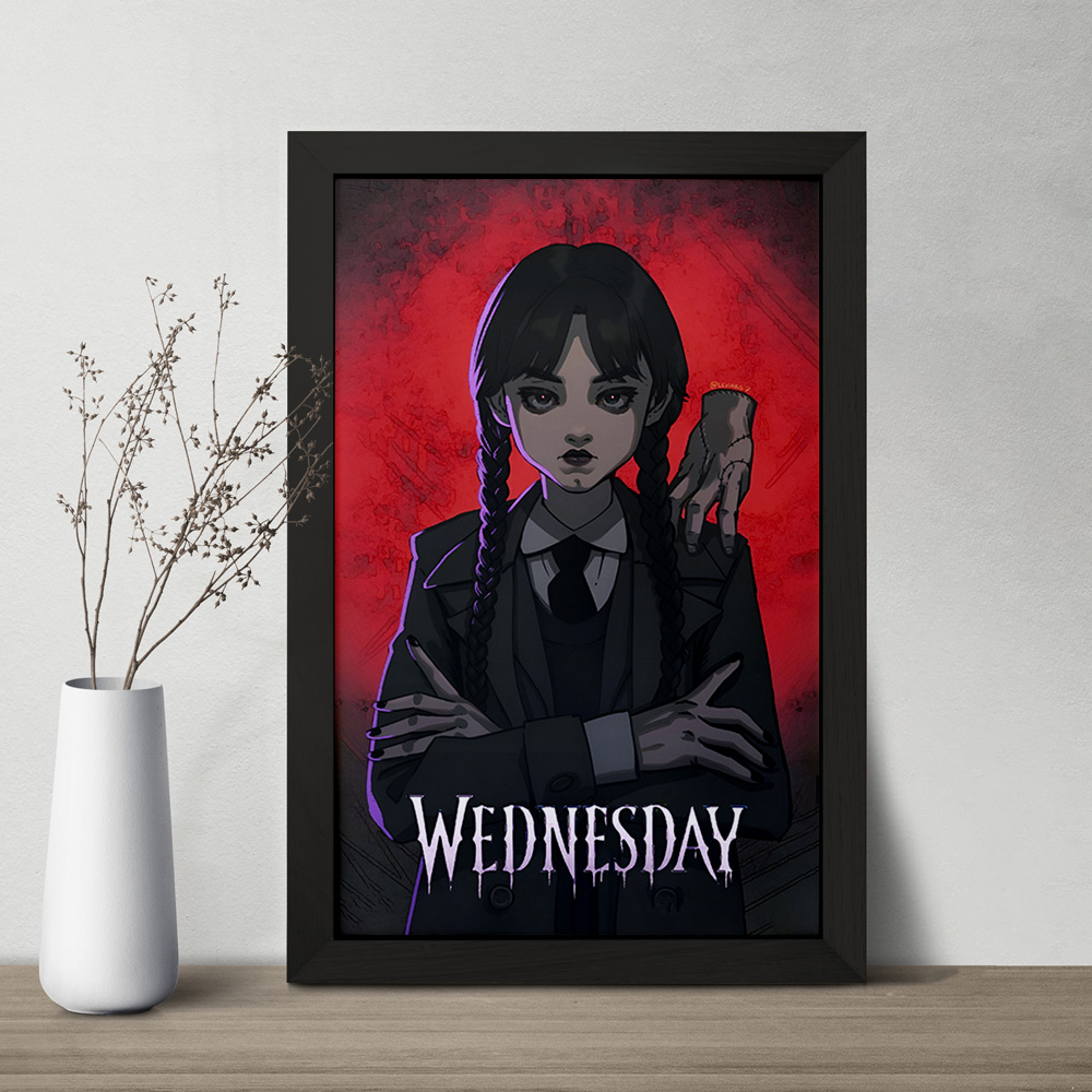 تابلو یا قاب عکس ونزدی (Wednesday) خندالو در ابعاد مختلف با استفاده از بهترین برند پروفیل پی وی سی دو سانتی متری بسیار مرغوب، تولید شده اند و در مونتاژ و نصب آنها نهایت دقت در قرارگیری هر چه دقیق تر لبه ها به یکدیگر صورت گرفته است. همچنین در پشت قاب ها گیره ای برای اتصال راحت به دیوار تعبیه شده است.