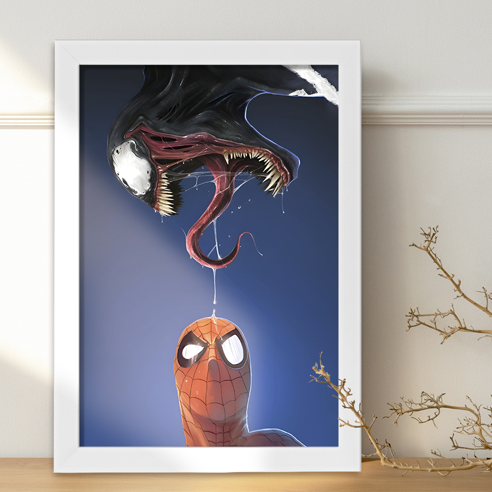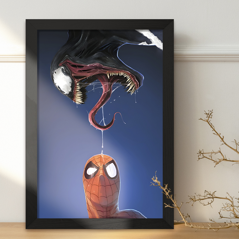 تابلو یا قاب عکس ونوم و مرد عنکبوتی خندالو در ابعاد مختلف با استفاده از بهترین برند پروفیل پی وی سی دو سانتی متری بسیار مرغوب، تولید شده اند و در مونتاژ و نصب آنها نهایت دقت در قرارگیری هر چه دقیق تر لبه ها به یکدیگر صورت گرفته است. همچنین در پشت قاب ها گیره ای برای اتصال راحت به دیوار تعبیه شده است. چاپ طرح تابلوی ونوم و مرد عنکبوتی با بالاترین کیفیت بوسیله چاپگرهای دیجیتال شش رنگ و کاغذ با کیفیت عکاسی انجام شده و بر روی آن شیشه ای با کیفیت و شفاف در سطح قاب قرار گرفته که از کاغذ عکس محافظت میکند. بسته بندی تابلوها جعبه های مقاوم و محکمی بوده که علاوه بر محافظتی که از بدنه قاب می کند، ظاهر جذابی دارد و تابلوی ونوم و مرد عنکبوتی را بدل به محصولی مناسب هدیه کرده است. تابلوهای خندالو با تنوع طرحی بسیار بالا شامل تابلو های دکوراتیو قابل استفاده در اتاق کودک، محل کار و منازل می باشد که سلیقه هر مخاطبی را پوشش می دهد، ضمن اینکه امکان تعویض عکس موجود در قاب وجود داشته و می توان عکس های خانوادگی و … را نیز در آن قرار داد.
