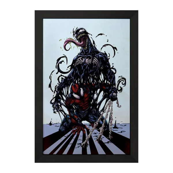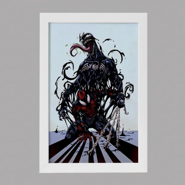 تابلو یا قاب عکس ونوم و مرد عنکبوتی خندالو در ابعاد مختلف با استفاده از بهترین برند پروفیل پی وی سی دو سانتی متری بسیار مرغوب، تولید شده اند و در مونتاژ و نصب آنها نهایت دقت در قرارگیری هر چه دقیق تر لبه ها به یکدیگر صورت گرفته است. همچنین در پشت قاب ها گیره ای برای اتصال راحت به دیوار تعبیه شده است. چاپ طرح تابلوی ونوم و مرد عنکبوتی با بالاترین کیفیت بوسیله چاپگرهای دیجیتال شش رنگ و کاغذ با کیفیت عکاسی انجام شده و بر روی آن شیشه ای با کیفیت و شفاف در سطح قاب قرار گرفته که از کاغذ عکس محافظت میکند. بسته بندی تابلوها جعبه های مقاوم و محکمی بوده که علاوه بر محافظتی که از بدنه قاب می کند، ظاهر جذابی دارد و تابلوی ونوم و مرد عنکبوتی را بدل به محصولی مناسب هدیه کرده است. تابلوهای خندالو با تنوع طرحی بسیار بالا شامل تابلو های دکوراتیو قابل استفاده در اتاق کودک، محل کار و منازل می باشد که سلیقه هر مخاطبی را پوشش می دهد، ضمن اینکه امکان تعویض عکس موجود در قاب وجود داشته و می توان عکس های خانوادگی و … را نیز در آن قرار داد.