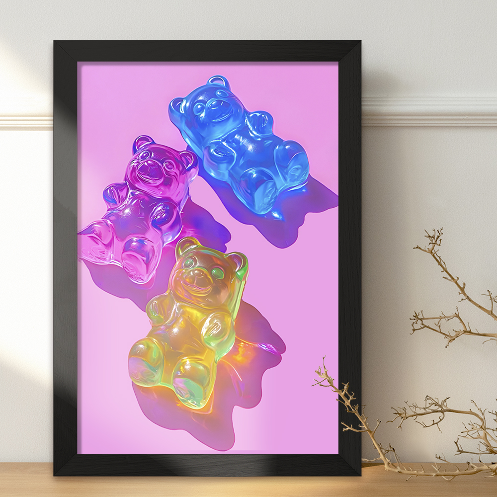 تابلو یا قاب عکس پاستیل خرسی خندالو در ابعاد مختلف با استفاده از بهترین برند پروفیل پی وی سی دو سانتی متری بسیار مرغوب، تولید شده اند و در مونتاژ و نصب آنها نهایت دقت در قرارگیری هر چه دقیق تر لبه ها به یکدیگر صورت گرفته است. همچنین در پشت قاب ها گیره ای برای اتصال راحت به دیوار تعبیه شده است. چاپ طرح تابلوی پاستیل خرسی با بالاترین کیفیت بوسیله چاپگرهای دیجیتال شش رنگ و کاغذ با کیفیت عکاسی انجام شده و بر روی آن شیشه ای با کیفیت و شفاف در سطح قاب قرار گرفته که از کاغذ عکس محافظت میکند. بسته بندی تابلوها جعبه های مقاوم و محکمی بوده که علاوه بر محافظتی که از بدنه قاب می کند، ظاهر جذابی دارد و تابلوی پاستیل خرسی را بدل به محصولی مناسب هدیه کرده است. تابلوهای خندالو با تنوع طرحی بسیار بالا شامل تابلو های دکوراتیو قابل استفاده در اتاق کودک، محل کار و منازل می باشد که سلیقه هر مخاطبی را پوشش می دهد، ضمن اینکه امکان تعویض عکس موجود در قاب وجود داشته و می توان عکس های خانوادگی و … را نیز در آن قرار داد.