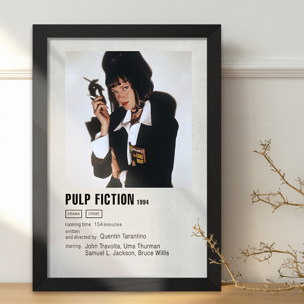 تابلو یا قاب عکس پالپ فیکشن (Pulp Fiction) خندالو در ابعاد مختلف با استفاده از بهترین برند پروفیل پی وی سی دو سانتی متری بسیار مرغوب، تولید شده اند و در مونتاژ و نصب آنها نهایت دقت در قرارگیری هر چه دقیق تر لبه ها به یکدیگر صورت گرفته است. همچنین در پشت قاب ها گیره ای برای اتصال راحت به دیوار تعبیه شده است.