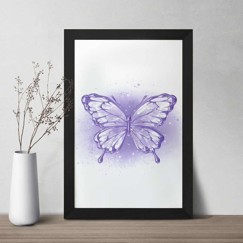 تابلو یا قاب عکس پروانه ی بنفش خندالو در ابعاد مختلف با استفاده از بهترین برند پروفیل پی وی سی دو سانتی متری بسیار مرغوب، تولید شده اند و در مونتاژ و نصب آنها نهایت دقت در قرارگیری هر چه دقیق تر لبه ها به یکدیگر صورت گرفته است. همچنین در پشت قاب ها گیره ای برای اتصال راحت به دیوار تعبیه شده است. چاپ طرح تابلوی پروانه ی بنفش با بالاترین کیفیت بوسیله چاپگرهای دیجیتال شش رنگ و کاغذ با کیفیت عکاسی انجام شده و بر روی آن شیشه ای با کیفیت و شفاف در سطح قاب قرار گرفته که از کاغذ عکس محافظت میکند. بسته بندی تابلوها جعبه های مقاوم و محکمی بوده که علاوه بر محافظتی که از بدنه قاب می کند، ظاهر جذابی دارد و تابلوی پروانه ی بنفش را بدل به محصولی مناسب هدیه کرده است. تابلوهای خندالو با تنوع طرحی بسیار بالا شامل تابلو های دکوراتیو قابل استفاده در اتاق کودک، محل کار و منازل می باشد که سلیقه هر مخاطبی را پوشش می دهد، ضمن اینکه امکان تعویض عکس موجود در قاب وجود داشته و می توان عکس های خانوادگی و … را نیز در آن قرار داد.