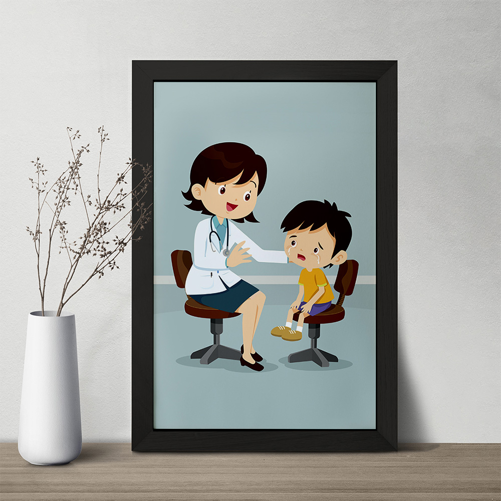 تابلو یا قاب عکس پزشک و پرستار کودکانه خندالو در ابعاد مختلف با استفاده از بهترین برند پروفیل پی وی سی دو سانتی متری بسیار مرغوب، تولید شده اند و در مونتاژ و نصب آنها نهایت دقت در قرارگیری هر چه دقیق تر لبه ها به یکدیگر صورت گرفته است. همچنین در پشت قاب ها گیره ای برای اتصال راحت به دیوار تعبیه شده است.