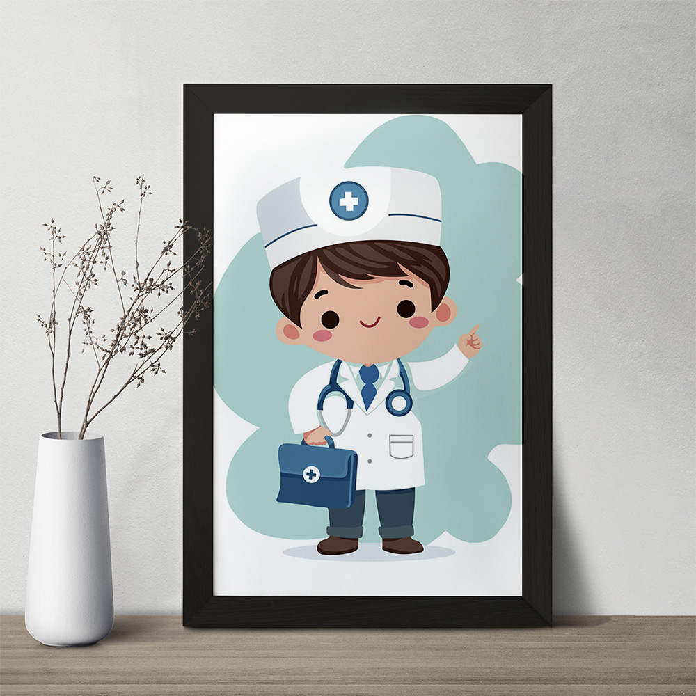 تابلو یا قاب عکس پزشک و پرستار کودکانه خندالو در ابعاد مختلف با استفاده از بهترین برند پروفیل پی وی سی دو سانتی متری بسیار مرغوب، تولید شده اند و در مونتاژ و نصب آنها نهایت دقت در قرارگیری هر چه دقیق تر لبه ها به یکدیگر صورت گرفته است. همچنین در پشت قاب ها گیره ای برای اتصال راحت به دیوار تعبیه شده است.