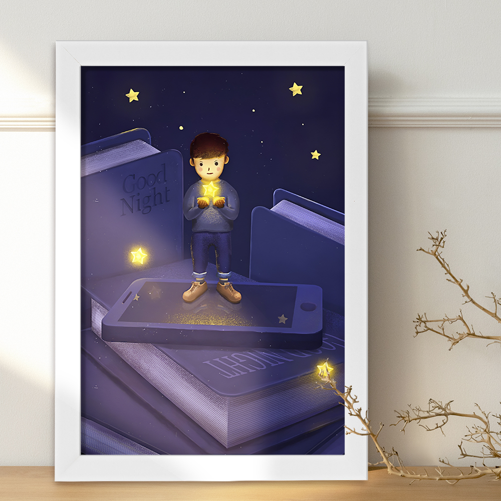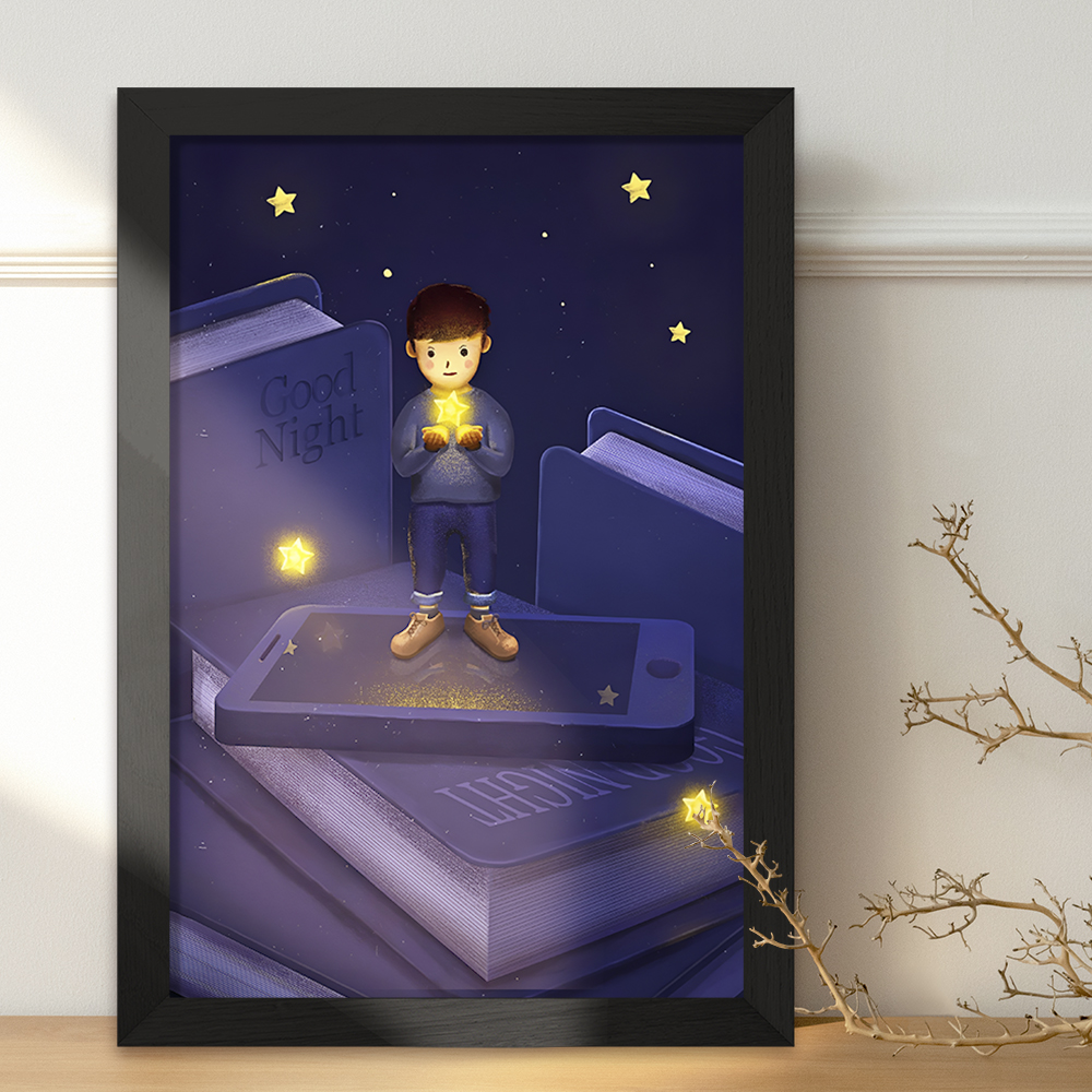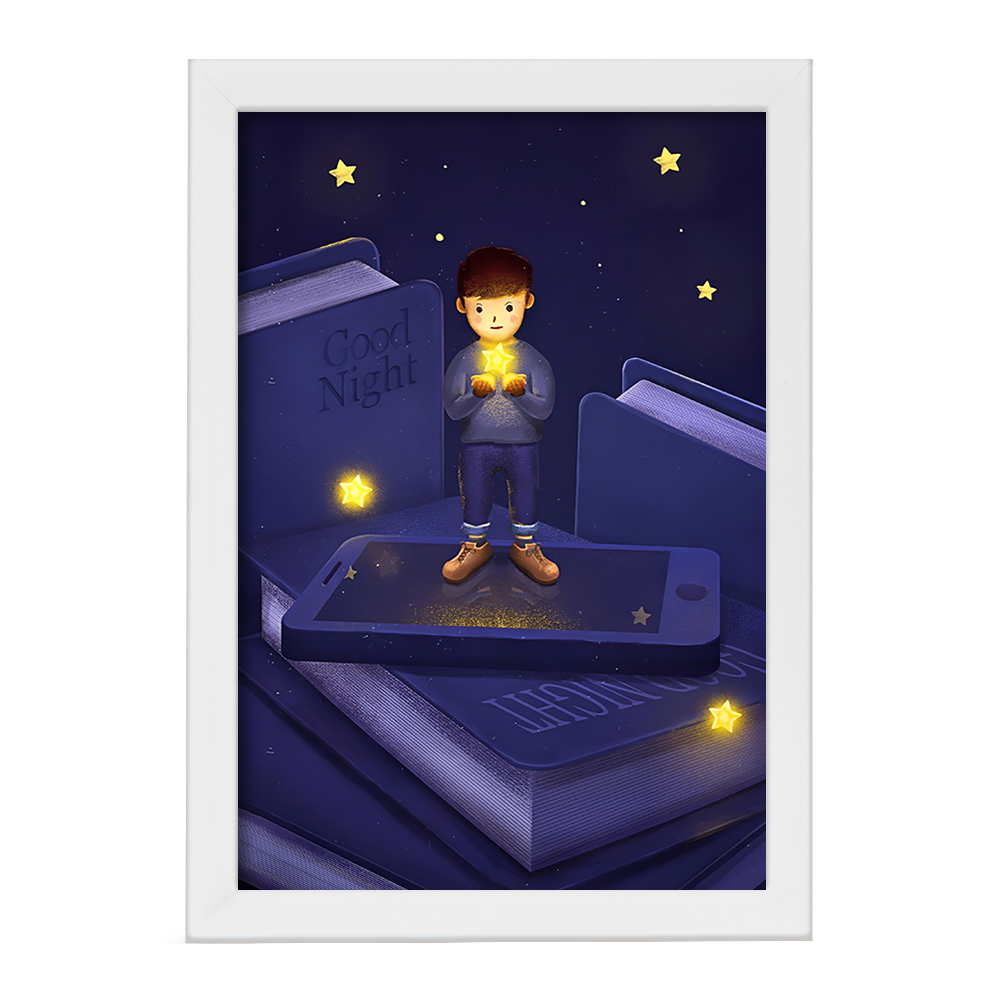 تابلو یا قاب عکس پسر بچه و ستاره ها خندالو در ابعاد مختلف با استفاده از بهترین برند پروفیل پی وی سی دو سانتی متری بسیار مرغوب، تولید شده اند و در مونتاژ و نصب آنها نهایت دقت در قرارگیری هر چه دقیق تر لبه ها به یکدیگر صورت گرفته است. همچنین در پشت قاب ها گیره ای برای اتصال راحت به دیوار تعبیه شده است. چاپ طرح تابلوی پسر بچه و ستاره ها با بالاترین کیفیت بوسیله چاپگرهای دیجیتال شش رنگ و کاغذ با کیفیت عکاسی انجام شده و بر روی آن شیشه ای با کیفیت و شفاف در سطح قاب قرار گرفته که از کاغذ عکس محافظت میکند. بسته بندی تابلوها جعبه های مقاوم و محکمی بوده که علاوه بر محافظتی که از بدنه قاب می کند، ظاهر جذابی دارد و تابلوی پسر بچه و ستاره ها را بدل به محصولی مناسب هدیه کرده است. تابلوهای خندالو با تنوع طرحی بسیار بالا شامل تابلو های دکوراتیو قابل استفاده در اتاق کودک، محل کار و منازل می باشد که سلیقه هر مخاطبی را پوشش می دهد، ضمن اینکه امکان تعویض عکس موجود در قاب وجود داشته و می توان عکس های خانوادگی و … را نیز در آن قرار داد.