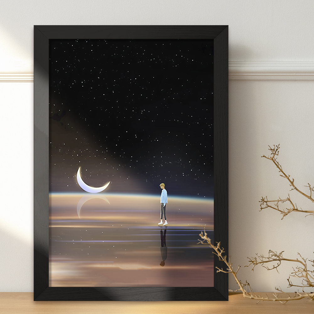 تابلو یا قاب عکس پسر و ماه خندالو در ابعاد مختلف با استفاده از بهترین برند پروفیل پی وی سی دو سانتی متری بسیار مرغوب، تولید شده اند و در مونتاژ و نصب آنها نهایت دقت در قرارگیری هر چه دقیق تر لبه ها به یکدیگر صورت گرفته است. همچنین در پشت قاب ها گیره ای برای اتصال راحت به دیوار تعبیه شده است. چاپ طرح تابلوی پسر و ماه با بالاترین کیفیت بوسیله چاپگرهای دیجیتال شش رنگ و کاغذ با کیفیت عکاسی انجام شده و بر روی آن شیشه ای با کیفیت و شفاف در سطح قاب قرار گرفته که از کاغذ عکس محافظت میکند. بسته بندی تابلوها جعبه های مقاوم و محکمی بوده که علاوه بر محافظتی که از بدنه قاب می کند، ظاهر جذابی دارد و تابلوی پسر و ماه را بدل به محصولی مناسب هدیه کرده است. تابلوهای خندالو با تنوع طرحی بسیار بالا شامل تابلو های دکوراتیو قابل استفاده در اتاق کودک، محل کار و منازل می باشد که سلیقه هر مخاطبی را پوشش می دهد، ضمن اینکه امکان تعویض عکس موجود در قاب وجود داشته و می توان عکس های خانوادگی و … را نیز در آن قرار داد.