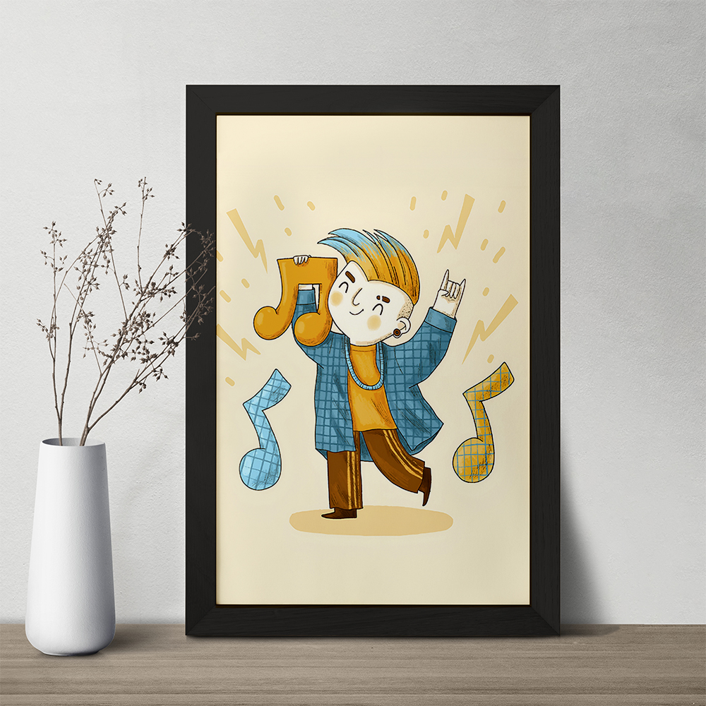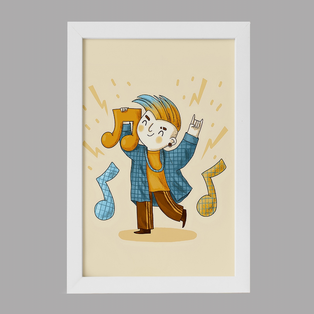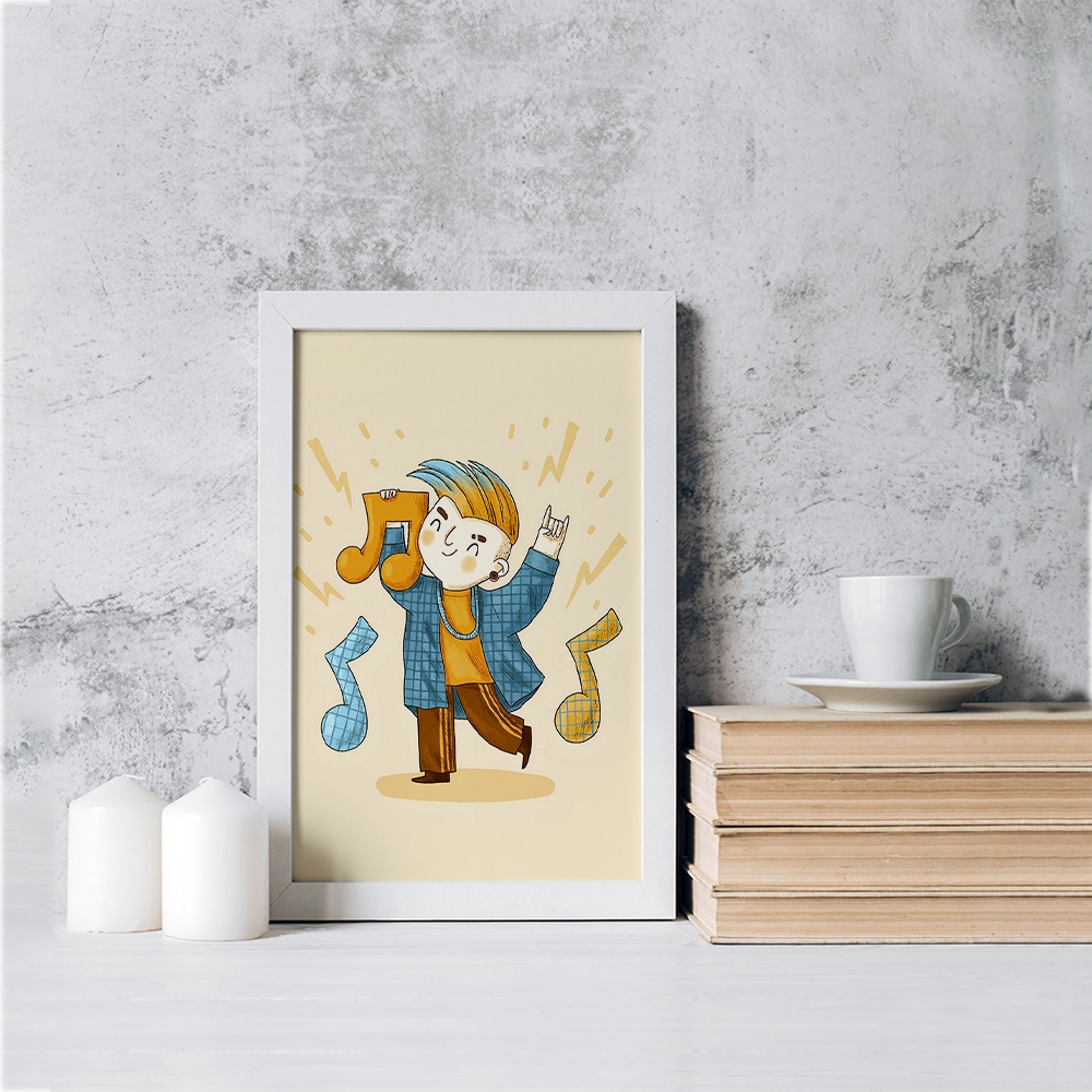 تابلو یا قاب عکس پسر و موسیقی خندالو در ابعاد مختلف با استفاده از بهترین برند پروفیل پی وی سی دو سانتی متری بسیار مرغوب، تولید شده اند و در مونتاژ و نصب آنها نهایت دقت در قرارگیری هر چه دقیق تر لبه ها به یکدیگر صورت گرفته است. همچنین در پشت قاب ها گیره ای برای اتصال راحت به دیوار تعبیه شده است. چاپ طرح تابلوی پسر و موسیقی با بالاترین کیفیت بوسیله چاپگرهای دیجیتال شش رنگ و کاغذ با کیفیت عکاسی انجام شده و بر روی آن شیشه ای با کیفیت و شفاف در سطح قاب قرار گرفته که از کاغذ عکس محافظت میکند. بسته بندی تابلوها جعبه های مقاوم و محکمی بوده که علاوه بر محافظتی که از بدنه قاب می کند، ظاهر جذابی دارد و تابلوی پسر و موسیقی را بدل به محصولی مناسب هدیه کرده است. تابلوهای خندالو با تنوع طرحی بسیار بالا شامل تابلو های دکوراتیو قابل استفاده در اتاق کودک، محل کار و منازل می باشد که سلیقه هر مخاطبی را پوشش می دهد، ضمن اینکه امکان تعویض عکس موجود در قاب وجود داشته و می توان عکس های خانوادگی و … را نیز در آن قرار داد.