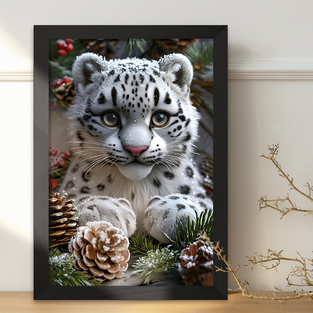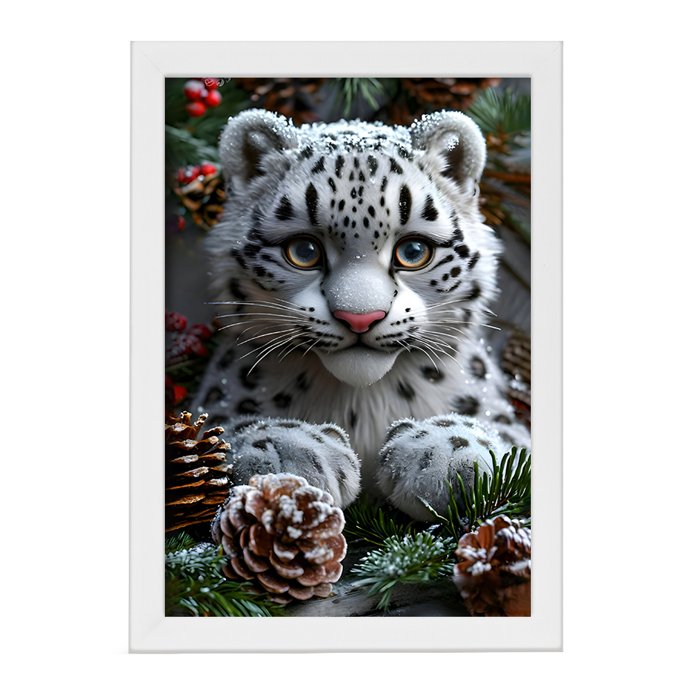 تابلو یا قاب عکس پلنگ سفید خندالو در ابعاد مختلف با استفاده از بهترین برند پروفیل پی وی سی دو سانتی متری بسیار مرغوب، تولید شده اند و در مونتاژ و نصب آنها نهایت دقت در قرارگیری هر چه دقیق تر لبه ها به یکدیگر صورت گرفته است. همچنین در پشت قاب ها گیره ای برای اتصال راحت به دیوار تعبیه شده است. چاپ طرح تابلوی پلنگ سفید با بالاترین کیفیت بوسیله چاپگرهای دیجیتال شش رنگ و کاغذ با کیفیت عکاسی انجام شده و بر روی آن شیشه ای با کیفیت و شفاف در سطح قاب قرار گرفته که از کاغذ عکس محافظت میکند. بسته بندی تابلوها جعبه های مقاوم و محکمی بوده که علاوه بر محافظتی که از بدنه قاب می کند، ظاهر جذابی دارد و تابلوی پلنگ سفید را بدل به محصولی مناسب هدیه کرده است. تابلوهای خندالو با تنوع طرحی بسیار بالا شامل تابلو های دکوراتیو قابل استفاده در اتاق کودک، محل کار و منازل می باشد که سلیقه هر مخاطبی را پوشش می دهد، ضمن اینکه امکان تعویض عکس موجود در قاب وجود داشته و می توان عکس های خانوادگی و … را نیز در آن قرار داد.