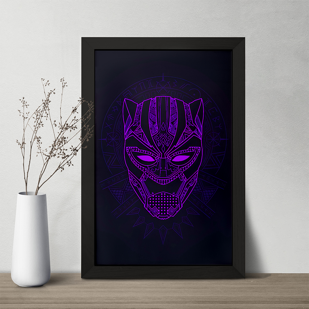تابلو یا قاب عکس پلنگ سیاه (Black Panther) خندالو در ابعاد مختلف با استفاده از بهترین برند پروفیل پی وی سی دو سانتی متری بسیار مرغوب، تولید شده اند و در مونتاژ و نصب آنها نهایت دقت در قرارگیری هر چه دقیق تر لبه ها به یکدیگر صورت گرفته است. همچنین در پشت قاب ها گیره ای برای اتصال راحت به دیوار تعبیه شده است.