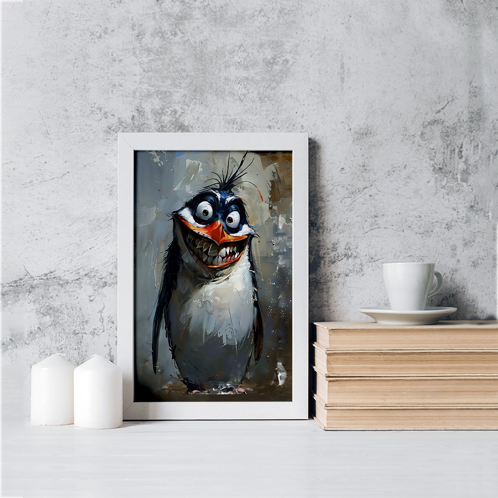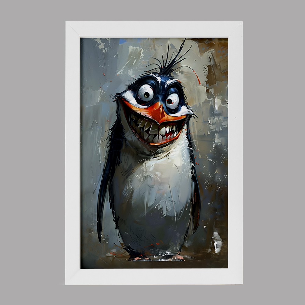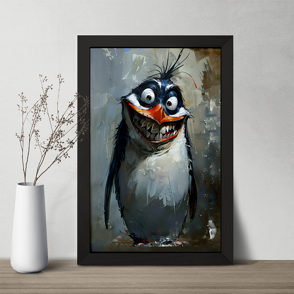 تابلو یا قاب عکس پنگوئن ترسناک خندالو در ابعاد مختلف با استفاده از بهترین برند پروفیل پی وی سی دو سانتی متری بسیار مرغوب، تولید شده اند و در مونتاژ و نصب آنها نهایت دقت در قرارگیری هر چه دقیق تر لبه ها به یکدیگر صورت گرفته است. همچنین در پشت قاب ها گیره ای برای اتصال راحت به دیوار تعبیه شده است. چاپ طرح تابلوی پنگوئن ترسناک با بالاترین کیفیت بوسیله چاپگرهای دیجیتال شش رنگ و کاغذ با کیفیت عکاسی انجام شده و بر روی آن شیشه ای با کیفیت و شفاف در سطح قاب قرار گرفته که از کاغذ عکس محافظت میکند. بسته بندی تابلوها جعبه های مقاوم و محکمی بوده که علاوه بر محافظتی که از بدنه قاب می کند، ظاهر جذابی دارد و تابلوی پنگوئن ترسناک را بدل به محصولی مناسب هدیه کرده است. تابلوهای خندالو با تنوع طرحی بسیار بالا شامل تابلو های دکوراتیو قابل استفاده در اتاق کودک، محل کار و منازل می باشد که سلیقه هر مخاطبی را پوشش می دهد، ضمن اینکه امکان تعویض عکس موجود در قاب وجود داشته و می توان عکس های خانوادگی و … را نیز در آن قرار داد.