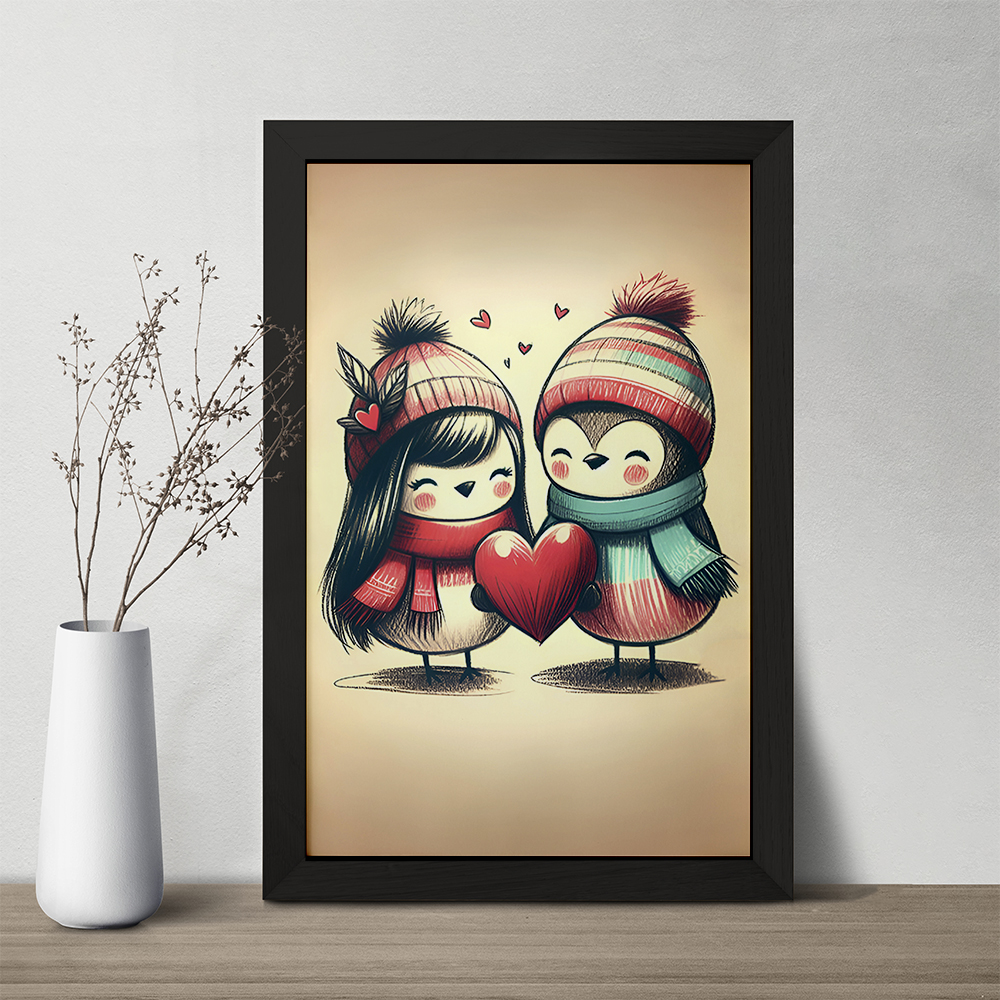 تابلو یا قاب عکس پنگوئن های عاشق خندالو در ابعاد مختلف با استفاده از بهترین برند پروفیل پی وی سی دو سانتی متری بسیار مرغوب، تولید شده اند و در مونتاژ و نصب آنها نهایت دقت در قرارگیری هر چه دقیق تر لبه ها به یکدیگر صورت گرفته است. همچنین در پشت قاب ها گیره ای برای اتصال راحت به دیوار تعبیه شده است. چاپ طرح تابلوی پنگوئن های عاشق با بالاترین کیفیت بوسیله چاپگرهای دیجیتال شش رنگ و کاغذ با کیفیت عکاسی انجام شده و بر روی آن شیشه ای با کیفیت و شفاف در سطح قاب قرار گرفته که از کاغذ عکس محافظت میکند. بسته بندی تابلوها جعبه های مقاوم و محکمی بوده که علاوه بر محافظتی که از بدنه قاب می کند، ظاهر جذابی دارد و تابلوی پنگوئن های عاشق را بدل به محصولی مناسب هدیه کرده است. تابلوهای خندالو با تنوع طرحی بسیار بالا شامل تابلو های دکوراتیو قابل استفاده در اتاق کودک، محل کار و منازل می باشد که سلیقه هر مخاطبی را پوشش می دهد، ضمن اینکه امکان تعویض عکس موجود در قاب وجود داشته و می توان عکس های خانوادگی و … را نیز در آن قرار داد.
