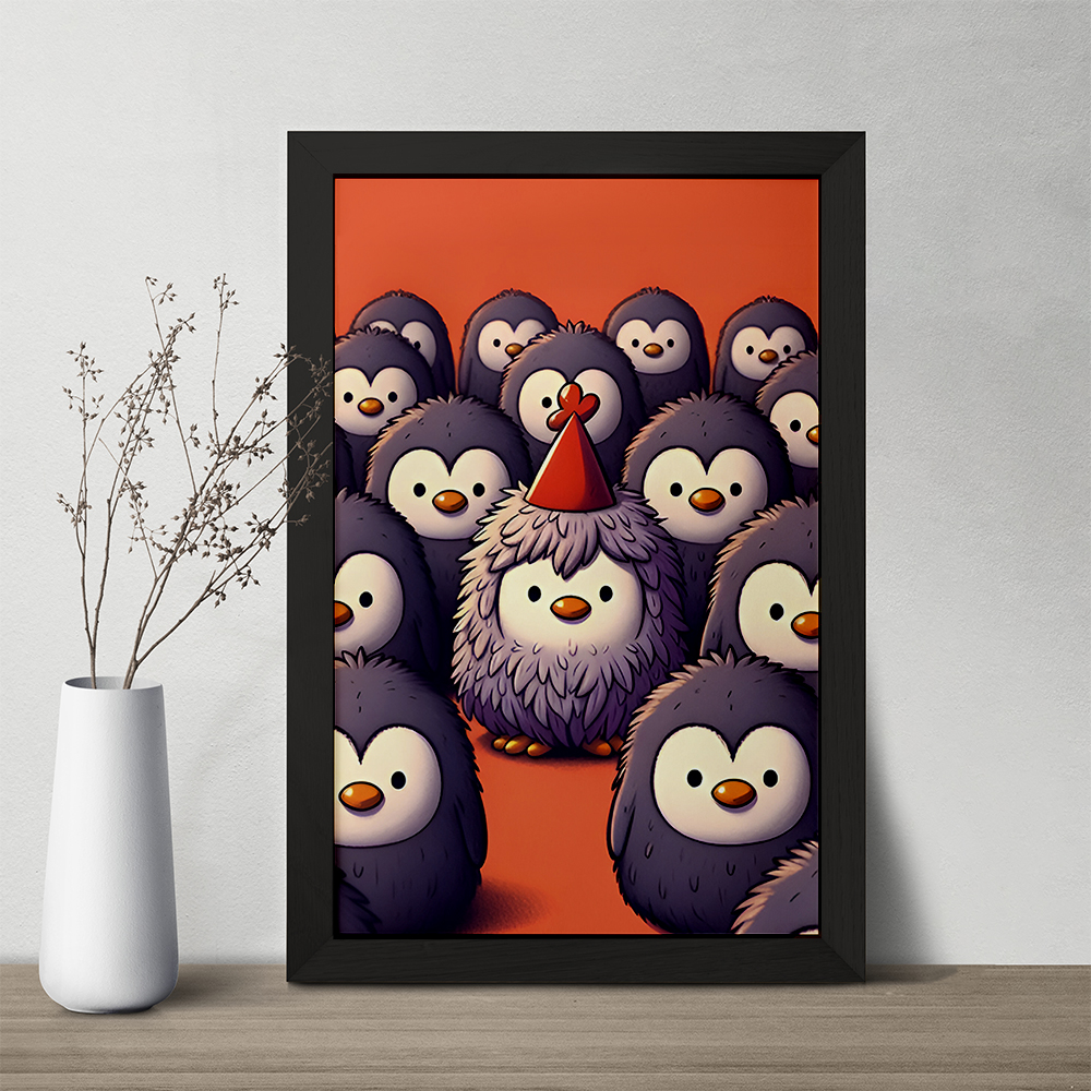 تابلو یا قاب عکس پنگوئن های کیوت خندالو در ابعاد مختلف با استفاده از بهترین برند پروفیل پی وی سی دو سانتی متری بسیار مرغوب، تولید شده اند و در مونتاژ و نصب آنها نهایت دقت در قرارگیری هر چه دقیق تر لبه ها به یکدیگر صورت گرفته است. همچنین در پشت قاب ها گیره ای برای اتصال راحت به دیوار تعبیه شده است. چاپ طرح تابلوی پنگوئن های کیوت با بالاترین کیفیت بوسیله چاپگرهای دیجیتال شش رنگ و کاغذ با کیفیت عکاسی انجام شده و بر روی آن شیشه ای با کیفیت و شفاف در سطح قاب قرار گرفته که از کاغذ عکس محافظت میکند. بسته بندی تابلوها جعبه های مقاوم و محکمی بوده که علاوه بر محافظتی که از بدنه قاب می کند، ظاهر جذابی دارد و تابلوی پنگوئن های کیوت را بدل به محصولی مناسب هدیه کرده است. تابلوهای خندالو با تنوع طرحی بسیار بالا شامل تابلو های دکوراتیو قابل استفاده در اتاق کودک، محل کار و منازل می باشد که سلیقه هر مخاطبی را پوشش می دهد، ضمن اینکه امکان تعویض عکس موجود در قاب وجود داشته و می توان عکس های خانوادگی و … را نیز در آن قرار داد.