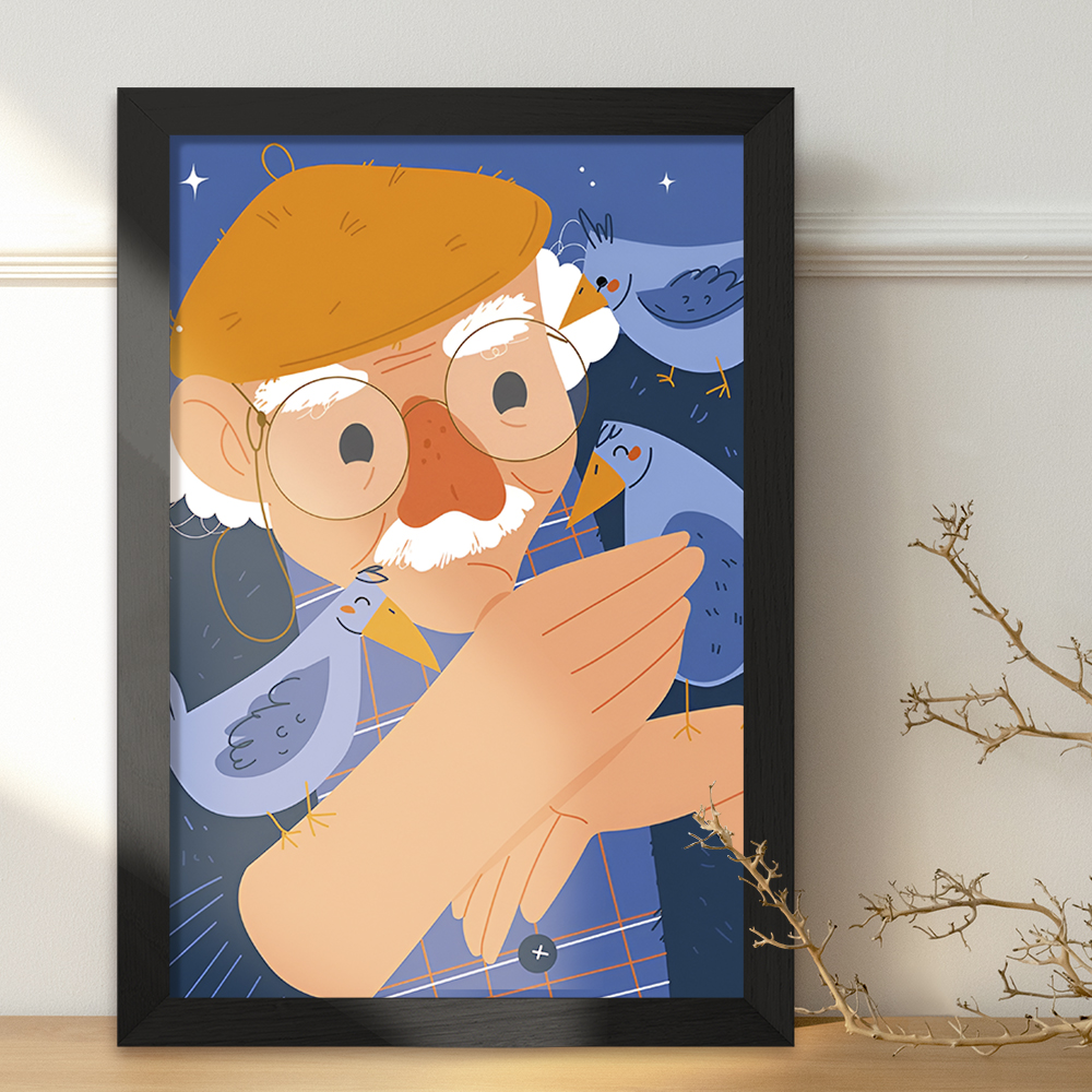 تابلو یا قاب عکس پیرمرد و پرنده ها خندالو در ابعاد مختلف با استفاده از بهترین برند پروفیل پی وی سی دو سانتی متری بسیار مرغوب، تولید شده اند و در مونتاژ و نصب آنها نهایت دقت در قرارگیری هر چه دقیق تر لبه ها به یکدیگر صورت گرفته است. همچنین در پشت قاب ها گیره ای برای اتصال راحت به دیوار تعبیه شده است. چاپ طرح تابلوی پیرمرد و پرنده ها با بالاترین کیفیت بوسیله چاپگرهای دیجیتال شش رنگ و کاغذ با کیفیت عکاسی انجام شده و بر روی آن شیشه ای با کیفیت و شفاف در سطح قاب قرار گرفته که از کاغذ عکس محافظت میکند. بسته بندی تابلوها جعبه های مقاوم و محکمی بوده که علاوه بر محافظتی که از بدنه قاب می کند، ظاهر جذابی دارد و تابلوی پیرمرد و پرنده ها را بدل به محصولی مناسب هدیه کرده است. تابلوهای خندالو با تنوع طرحی بسیار بالا شامل تابلو های دکوراتیو قابل استفاده در اتاق کودک، محل کار و منازل می باشد که سلیقه هر مخاطبی را پوشش می دهد، ضمن اینکه امکان تعویض عکس موجود در قاب وجود داشته و می توان عکس های خانوادگی و … را نیز در آن قرار داد.