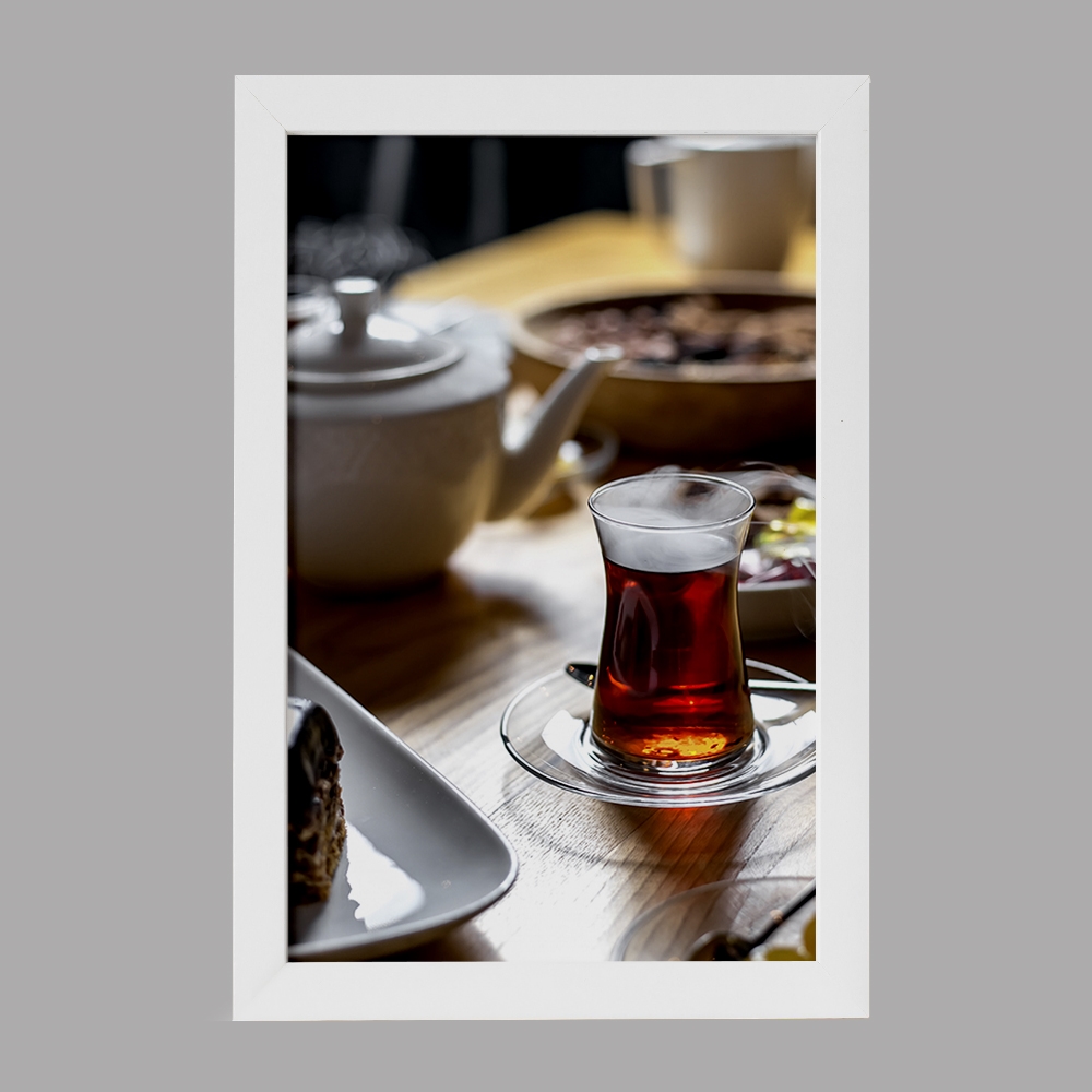 تابلو یا قاب عکس چای و کافه خندالو در ابعاد مختلف با استفاده از بهترین برند پروفیل پی وی سی دو سانتی متری بسیار مرغوب، تولید شده اند و در مونتاژ و نصب آنها نهایت دقت در قرارگیری هر چه دقیق تر لبه ها به یکدیگر صورت گرفته است. همچنین در پشت قاب ها گیره ای برای اتصال راحت به دیوار تعبیه شده است.