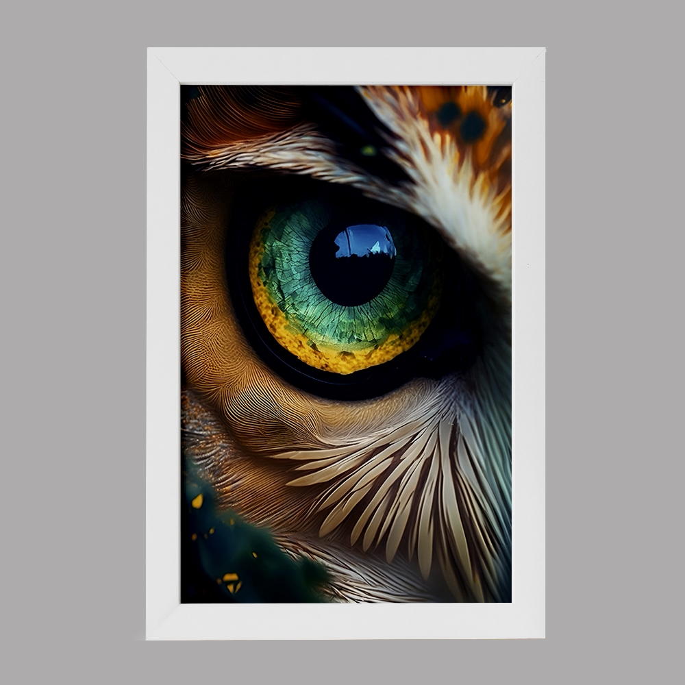تابلو یا قاب عکس چشم جغد خندالو در ابعاد مختلف با استفاده از بهترین برند پروفیل پی وی سی دو سانتی متری بسیار مرغوب، تولید شده اند و در مونتاژ و نصب آنها نهایت دقت در قرارگیری هر چه دقیق تر لبه ها به یکدیگر صورت گرفته است. همچنین در پشت قاب ها گیره ای برای اتصال راحت به دیوار تعبیه شده است. چاپ طرح تابلوی چشم جغد با بالاترین کیفیت بوسیله چاپگرهای دیجیتال شش رنگ و کاغذ با کیفیت عکاسی انجام شده و بر روی آن شیشه ای با کیفیت و شفاف در سطح قاب قرار گرفته که از کاغذ عکس محافظت میکند. بسته بندی تابلوها جعبه های مقاوم و محکمی بوده که علاوه بر محافظتی که از بدنه قاب می کند، ظاهر جذابی دارد و تابلوی چشم جغد را بدل به محصولی مناسب هدیه کرده است. تابلوهای خندالو با تنوع طرحی بسیار بالا شامل تابلو های دکوراتیو قابل استفاده در اتاق کودک، محل کار و منازل می باشد که سلیقه هر مخاطبی را پوشش می دهد، ضمن اینکه امکان تعویض عکس موجود در قاب وجود داشته و می توان عکس های خانوادگی و … را نیز در آن قرار داد.