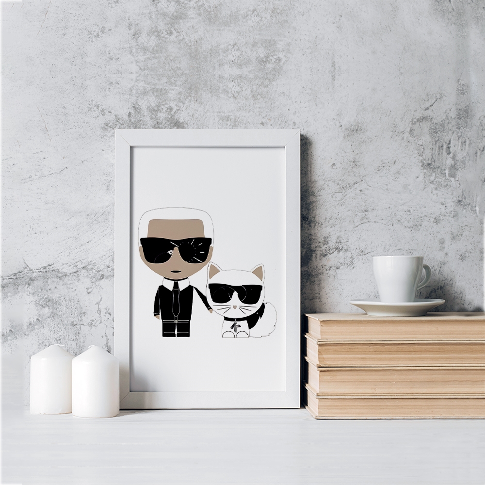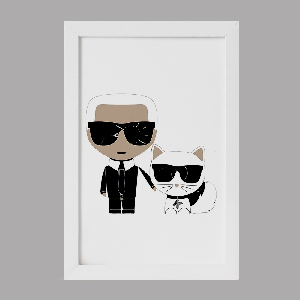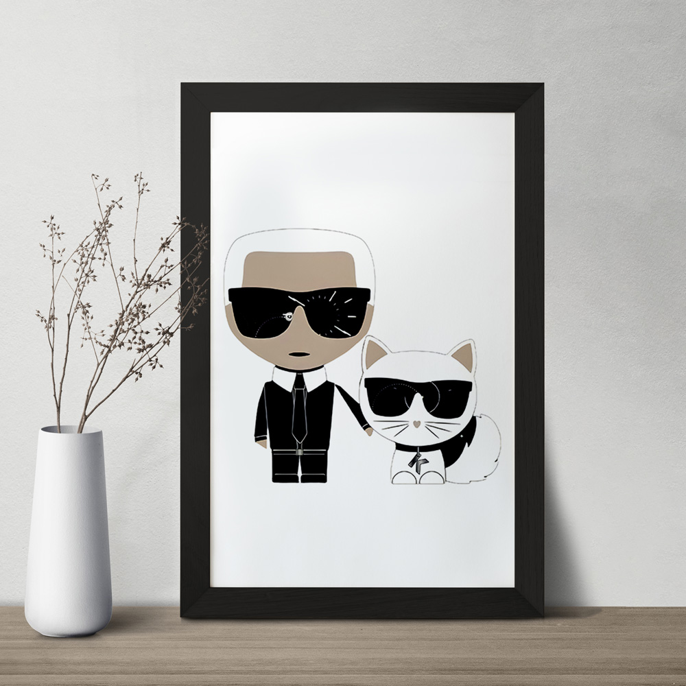 تابلو یا قاب عکس کارل لاگرفلد خندالو در ابعاد مختلف با استفاده از بهترین برند پروفیل پی وی سی دو سانتی متری بسیار مرغوب، تولید شده اند و در مونتاژ و نصب آنها نهایت دقت در قرارگیری هر چه دقیق تر لبه ها به یکدیگر صورت گرفته است. همچنین در پشت قاب ها گیره ای برای اتصال راحت به دیوار تعبیه شده است.
