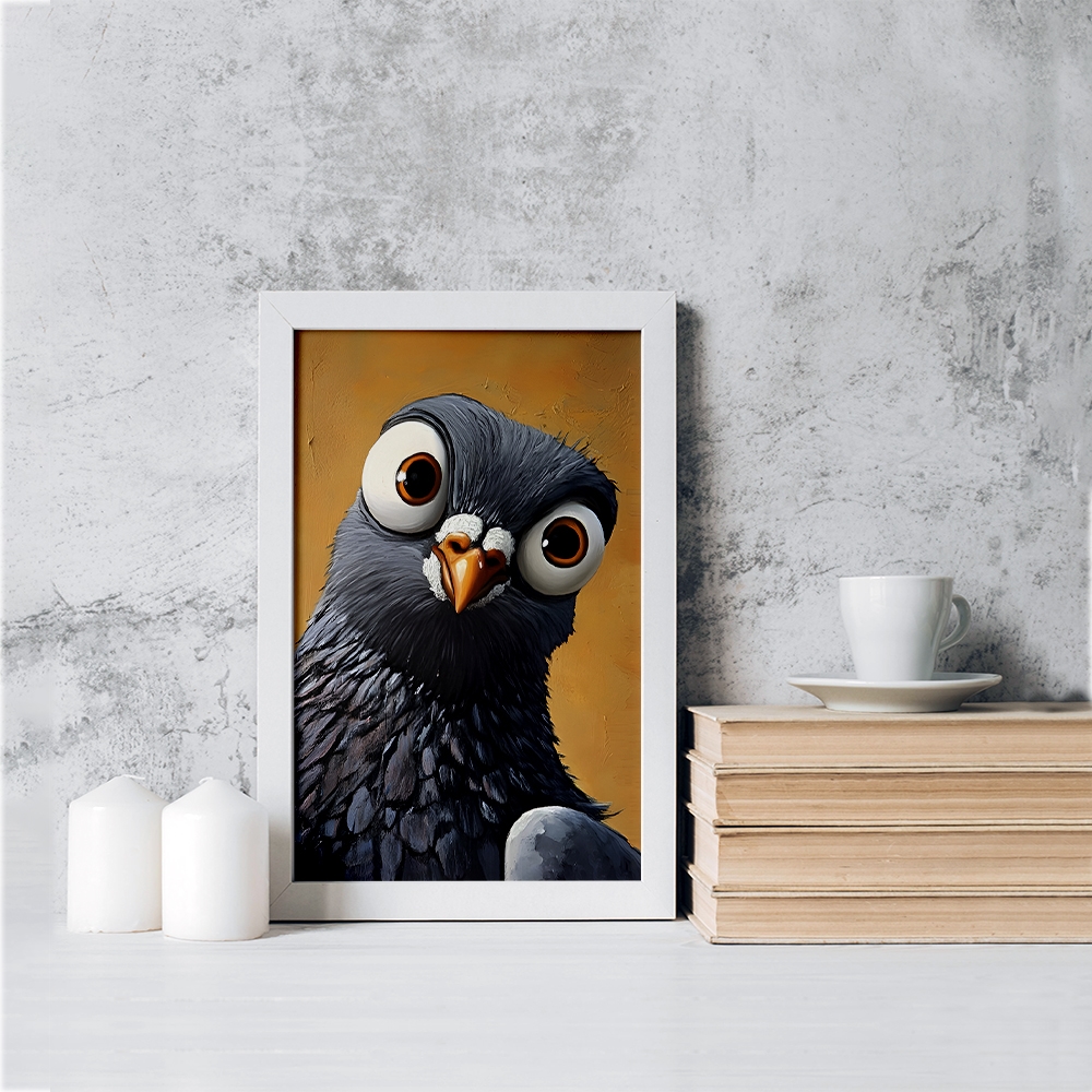 تابلو یا قاب عکس کبوتر خنگ خندالو در ابعاد مختلف با استفاده از بهترین برند پروفیل پی وی سی دو سانتی متری بسیار مرغوب، تولید شده اند و در مونتاژ و نصب آنها نهایت دقت در قرارگیری هر چه دقیق تر لبه ها به یکدیگر صورت گرفته است. همچنین در پشت قاب ها گیره ای برای اتصال راحت به دیوار تعبیه شده است. چاپ طرح تابلوی کبوتر خنگ با بالاترین کیفیت بوسیله چاپگرهای دیجیتال شش رنگ و کاغذ با کیفیت عکاسی انجام شده و بر روی آن شیشه ای با کیفیت و شفاف در سطح قاب قرار گرفته که از کاغذ عکس محافظت میکند. بسته بندی تابلوها جعبه های مقاوم و محکمی بوده که علاوه بر محافظتی که از بدنه قاب می کند، ظاهر جذابی دارد و تابلوی کبوتر خنگ را بدل به محصولی مناسب هدیه کرده است. تابلوهای خندالو با تنوع طرحی بسیار بالا شامل تابلو های دکوراتیو قابل استفاده در اتاق کودک، محل کار و منازل می باشد که سلیقه هر مخاطبی را پوشش می دهد، ضمن اینکه امکان تعویض عکس موجود در قاب وجود داشته و می توان عکس های خانوادگی و … را نیز در آن قرار داد.