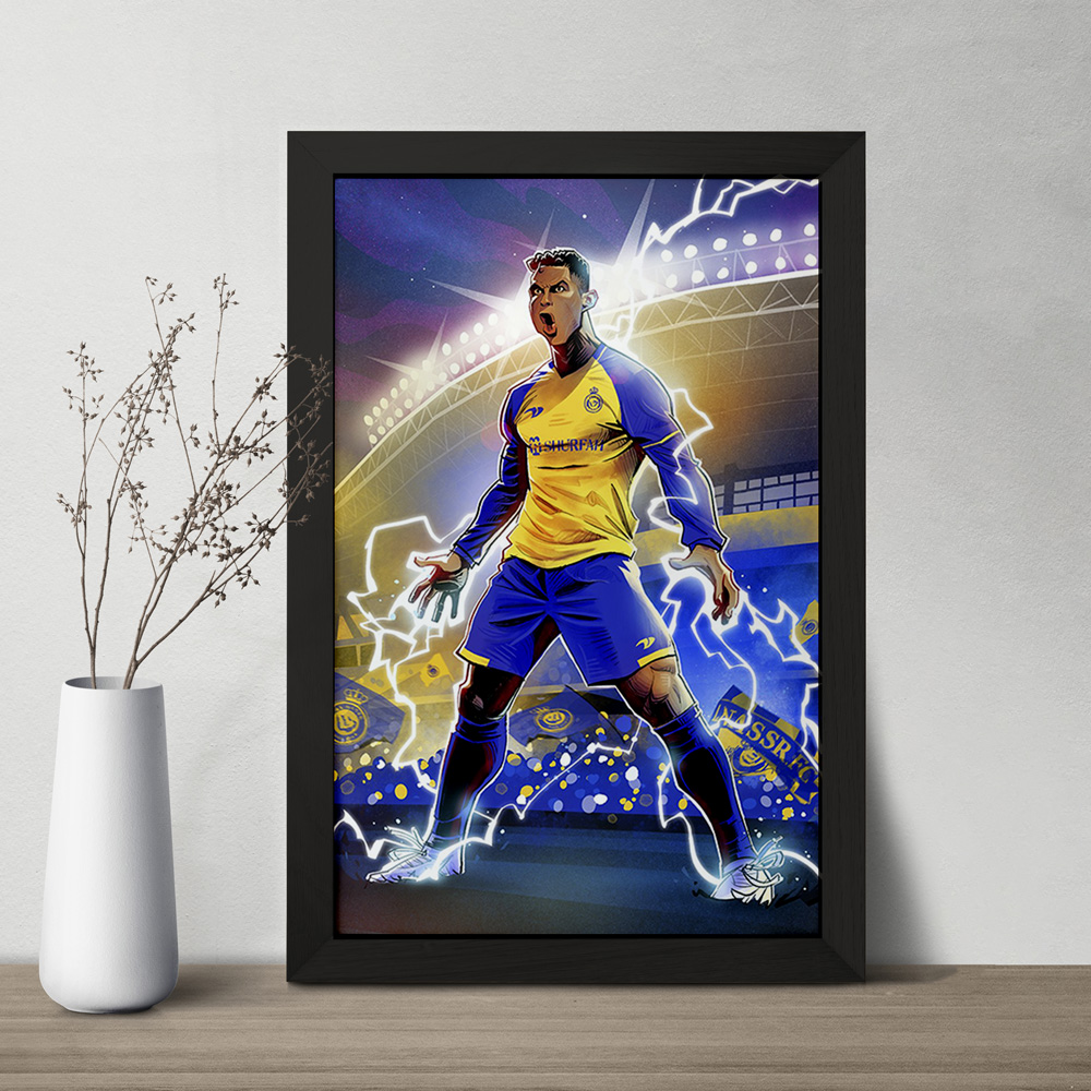 تابلو یا قاب عکس کریستیانو رونالدو خندالو در ابعاد مختلف با استفاده از بهترین برند پروفیل پی وی سی دو سانتی متری بسیار مرغوب، تولید شده اند و در مونتاژ و نصب آنها نهایت دقت در قرارگیری هر چه دقیق تر لبه ها به یکدیگر صورت گرفته است. همچنین در پشت قاب ها گیره ای برای اتصال راحت به دیوار تعبیه شده است.