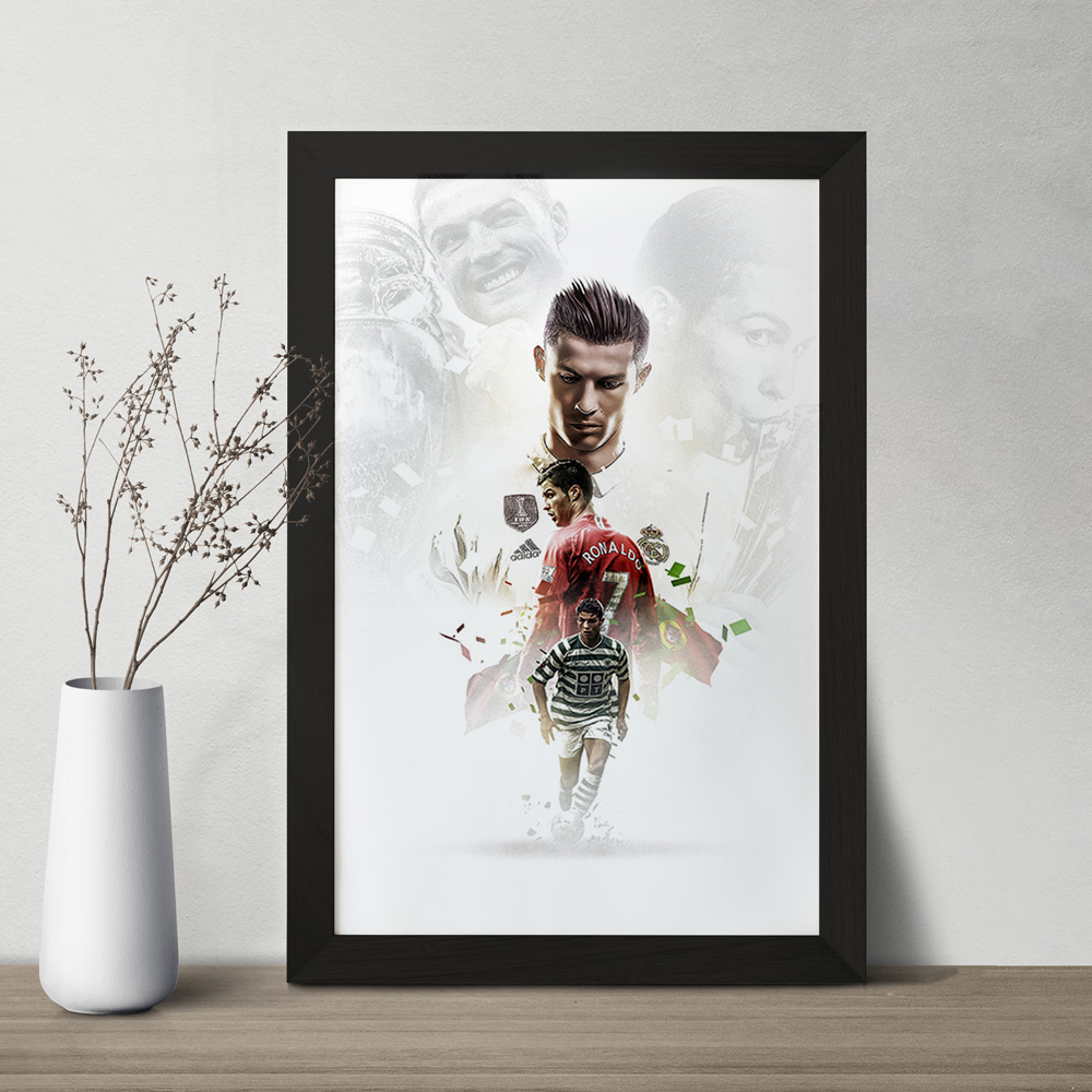 تابلو یا قاب عکس کریستیانو رونالدو خندالو در ابعاد مختلف با استفاده از بهترین برند پروفیل پی وی سی دو سانتی متری بسیار مرغوب، تولید شده اند و در مونتاژ و نصب آنها نهایت دقت در قرارگیری هر چه دقیق تر لبه ها به یکدیگر صورت گرفته است. همچنین در پشت قاب ها گیره ای برای اتصال راحت به دیوار تعبیه شده است.