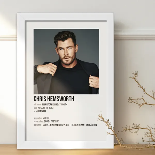 تابلو یا قاب عکس کریس همسورث (Chris Hemsworth) خندالو در ابعاد مختلف با استفاده از بهترین برند پروفیل پی وی سی دو سانتی متری بسیار مرغوب، تولید شده اند و در مونتاژ و نصب آنها نهایت دقت در قرارگیری هر چه دقیق تر لبه ها به یکدیگر صورت گرفته است. همچنین در پشت قاب ها گیره ای برای اتصال راحت به دیوار تعبیه شده است.