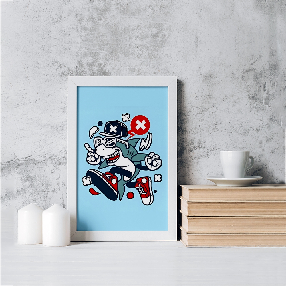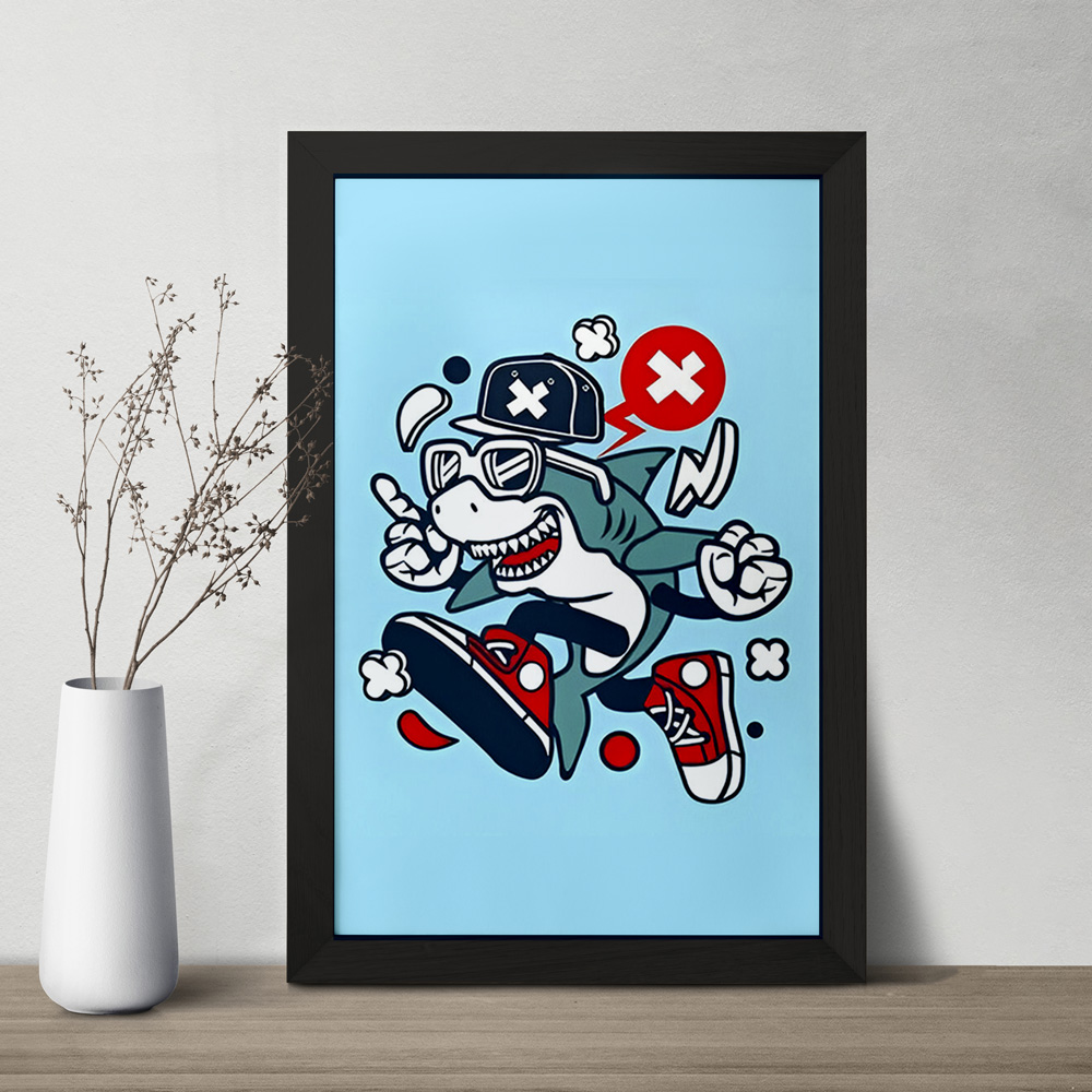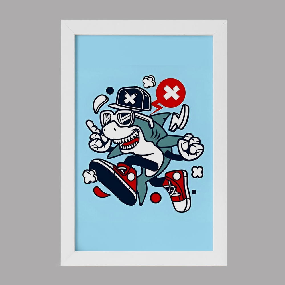 تابلو یا قاب عکس کوسه خندالو در ابعاد مختلف با استفاده از بهترین برند پروفیل پی وی سی دو سانتی متری بسیار مرغوب، تولید شده اند و در مونتاژ و نصب آنها نهایت دقت در قرارگیری هر چه دقیق تر لبه ها به یکدیگر صورت گرفته است. همچنین در پشت قاب ها گیره ای برای اتصال راحت به دیوار تعبیه شده است. چاپ طرح تابلوی کوسه با بالاترین کیفیت بوسیله چاپگرهای دیجیتال شش رنگ و کاغذ با کیفیت عکاسی انجام شده و بر روی آن شیشه ای با کیفیت و شفاف در سطح قاب قرار گرفته که از کاغذ عکس محافظت میکند. بسته بندی تابلوها جعبه های مقاوم و محکمی بوده که علاوه بر محافظتی که از بدنه قاب می کند، ظاهر جذابی دارد و تابلوی کوسه را بدل به محصولی مناسب هدیه کرده است. تابلوهای خندالو با تنوع طرحی بسیار بالا شامل تابلو های دکوراتیو قابل استفاده در اتاق کودک، محل کار و منازل می باشد که سلیقه هر مخاطبی را پوشش می دهد، ضمن اینکه امکان تعویض عکس موجود در قاب وجود داشته و می توان عکس های خانوادگی و … را نیز در آن قرار داد.