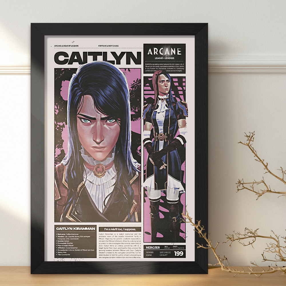 تابلو یا قاب عکس کیتلین آرکین (Arcane) خندالو در ابعاد مختلف با استفاده از بهترین برند پروفیل پی وی سی دو سانتی متری بسیار مرغوب، تولید شده اند و در مونتاژ و نصب آنها نهایت دقت در قرارگیری هر چه دقیق تر لبه ها به یکدیگر صورت گرفته است. همچنین در پشت قاب ها گیره ای برای اتصال راحت به دیوار تعبیه شده است.