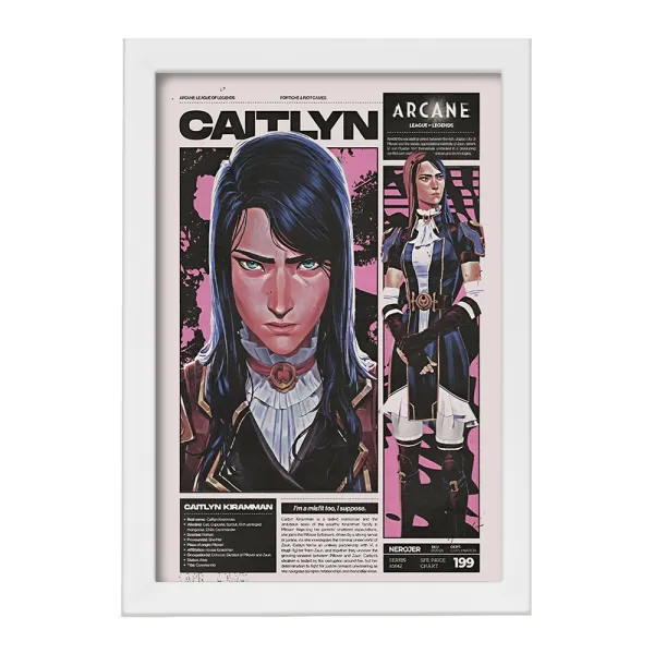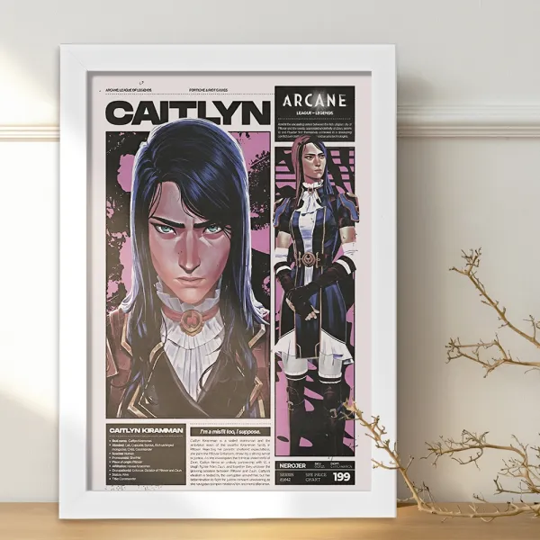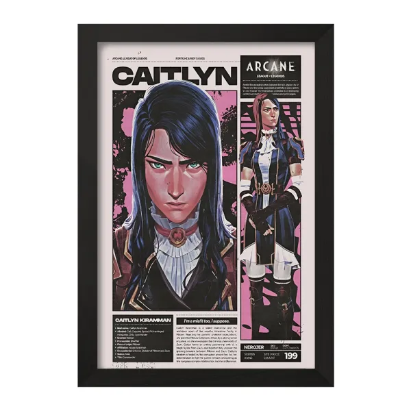 تابلو یا قاب عکس کیتلین آرکین (Arcane) خندالو در ابعاد مختلف با استفاده از بهترین برند پروفیل پی وی سی دو سانتی متری بسیار مرغوب، تولید شده اند و در مونتاژ و نصب آنها نهایت دقت در قرارگیری هر چه دقیق تر لبه ها به یکدیگر صورت گرفته است. همچنین در پشت قاب ها گیره ای برای اتصال راحت به دیوار تعبیه شده است.