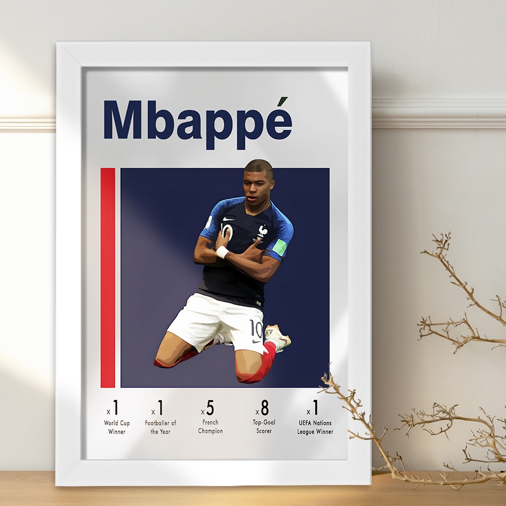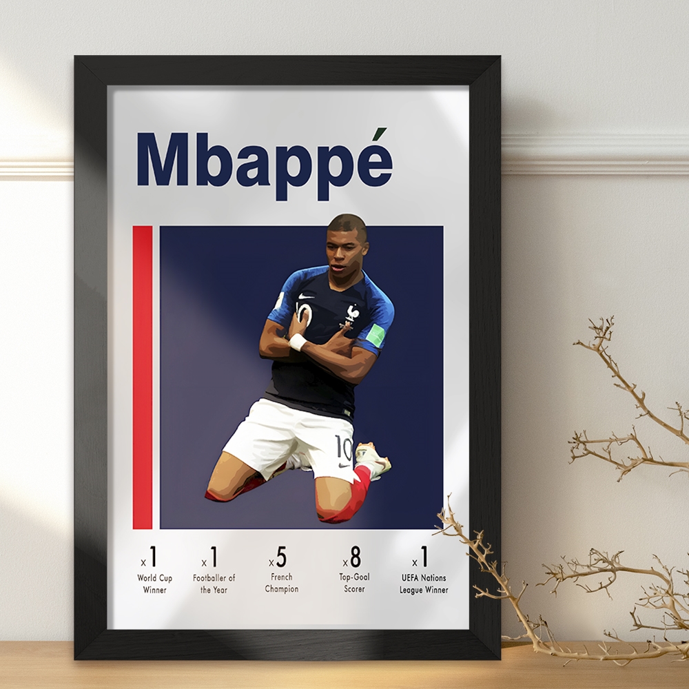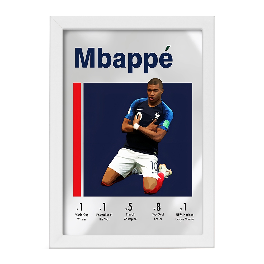 تابلو یا قاب عکس کیلیان امباپه خندالو در ابعاد مختلف با استفاده از بهترین برند پروفیل پی وی سی دو سانتی متری بسیار مرغوب، تولید شده اند و در مونتاژ و نصب آنها نهایت دقت در قرارگیری هر چه دقیق تر لبه ها به یکدیگر صورت گرفته است. همچنین در پشت قاب ها گیره ای برای اتصال راحت به دیوار تعبیه شده است.