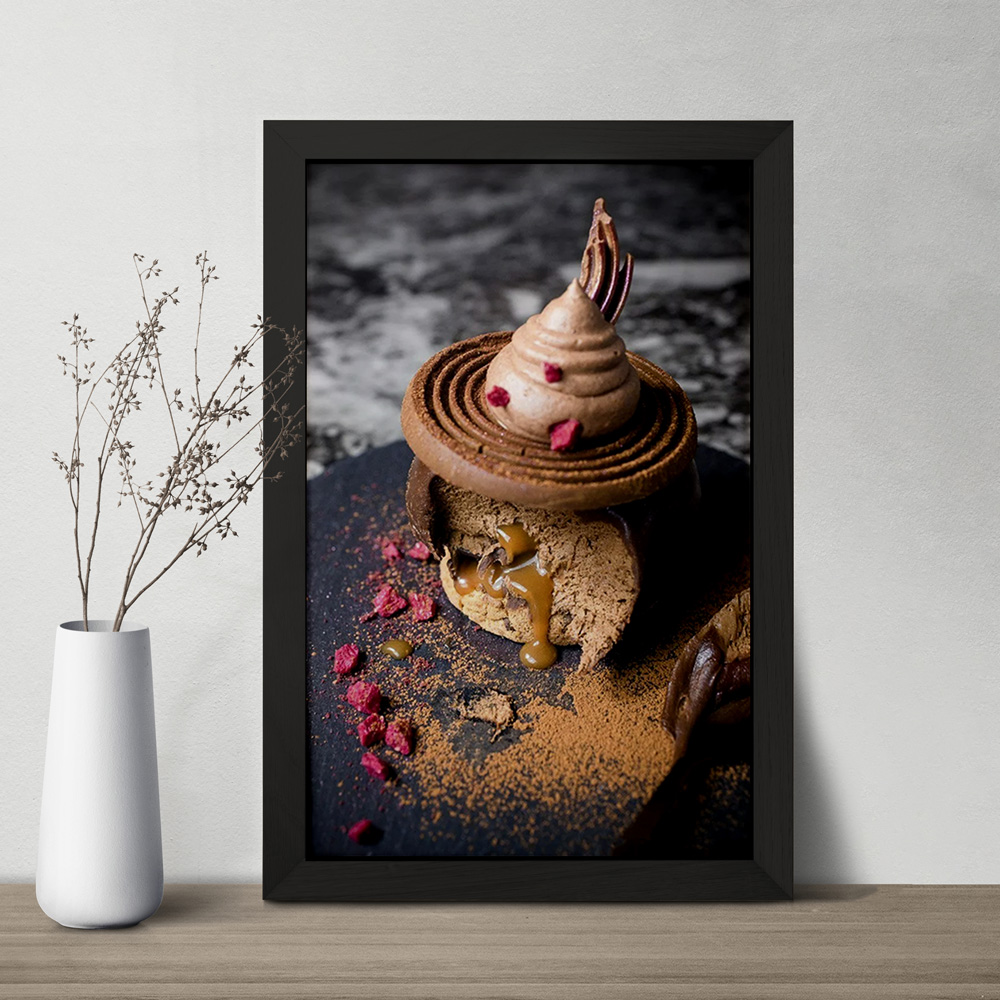 تابلو یا قاب عکس کیک شکلاتی خندالو در ابعاد مختلف با استفاده از بهترین برند پروفیل پی وی سی دو سانتی متری بسیار مرغوب، تولید شده اند و در مونتاژ و نصب آنها نهایت دقت در قرارگیری هر چه دقیق تر لبه ها به یکدیگر صورت گرفته است. همچنین در پشت قاب ها گیره ای برای اتصال راحت به دیوار تعبیه شده است.