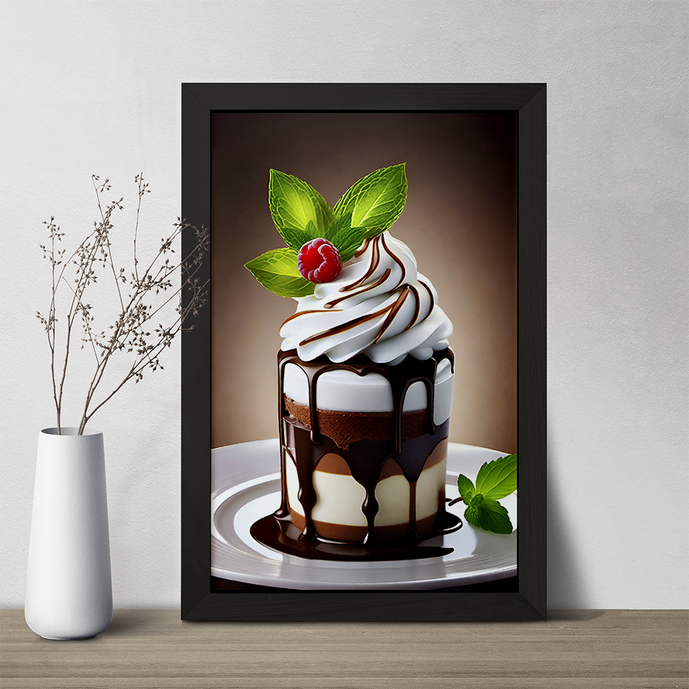 تابلو یا قاب عکس کیک شکلاتی خندالو در ابعاد مختلف با استفاده از بهترین برند پروفیل پی وی سی دو سانتی متری بسیار مرغوب، تولید شده اند و در مونتاژ و نصب آنها نهایت دقت در قرارگیری هر چه دقیق تر لبه ها به یکدیگر صورت گرفته است. همچنین در پشت قاب ها گیره ای برای اتصال راحت به دیوار تعبیه شده است.