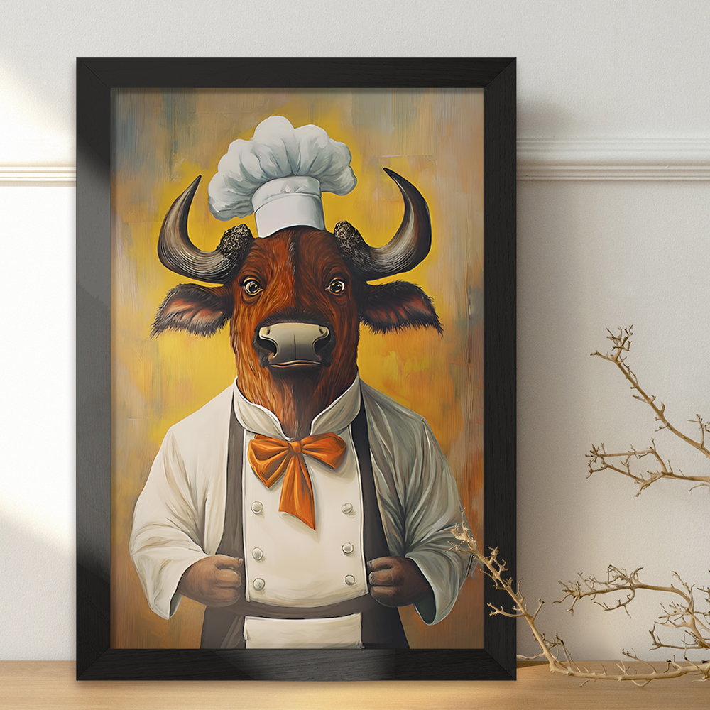 تابلو یا قاب عکس گاو سرآشپز خندالو در ابعاد مختلف با استفاده از بهترین برند پروفیل پی وی سی دو سانتی متری بسیار مرغوب، تولید شده اند و در مونتاژ و نصب آنها نهایت دقت در قرارگیری هر چه دقیق تر لبه ها به یکدیگر صورت گرفته است. همچنین در پشت قاب ها گیره ای برای اتصال راحت به دیوار تعبیه شده است. چاپ طرح تابلوی گاو سرآشپز با بالاترین کیفیت بوسیله چاپگرهای دیجیتال شش رنگ و کاغذ با کیفیت عکاسی انجام شده و بر روی آن شیشه ای با کیفیت و شفاف در سطح قاب قرار گرفته که از کاغذ عکس محافظت میکند. بسته بندی تابلوها جعبه های مقاوم و محکمی بوده که علاوه بر محافظتی که از بدنه قاب می کند، ظاهر جذابی دارد و تابلوی گاو سرآشپز را بدل به محصولی مناسب هدیه کرده است. تابلوهای خندالو با تنوع طرحی بسیار بالا شامل تابلو های دکوراتیو قابل استفاده در اتاق کودک، محل کار و منازل می باشد که سلیقه هر مخاطبی را پوشش می دهد، ضمن اینکه امکان تعویض عکس موجود در قاب وجود داشته و می توان عکس های خانوادگی و … را نیز در آن قرار داد.