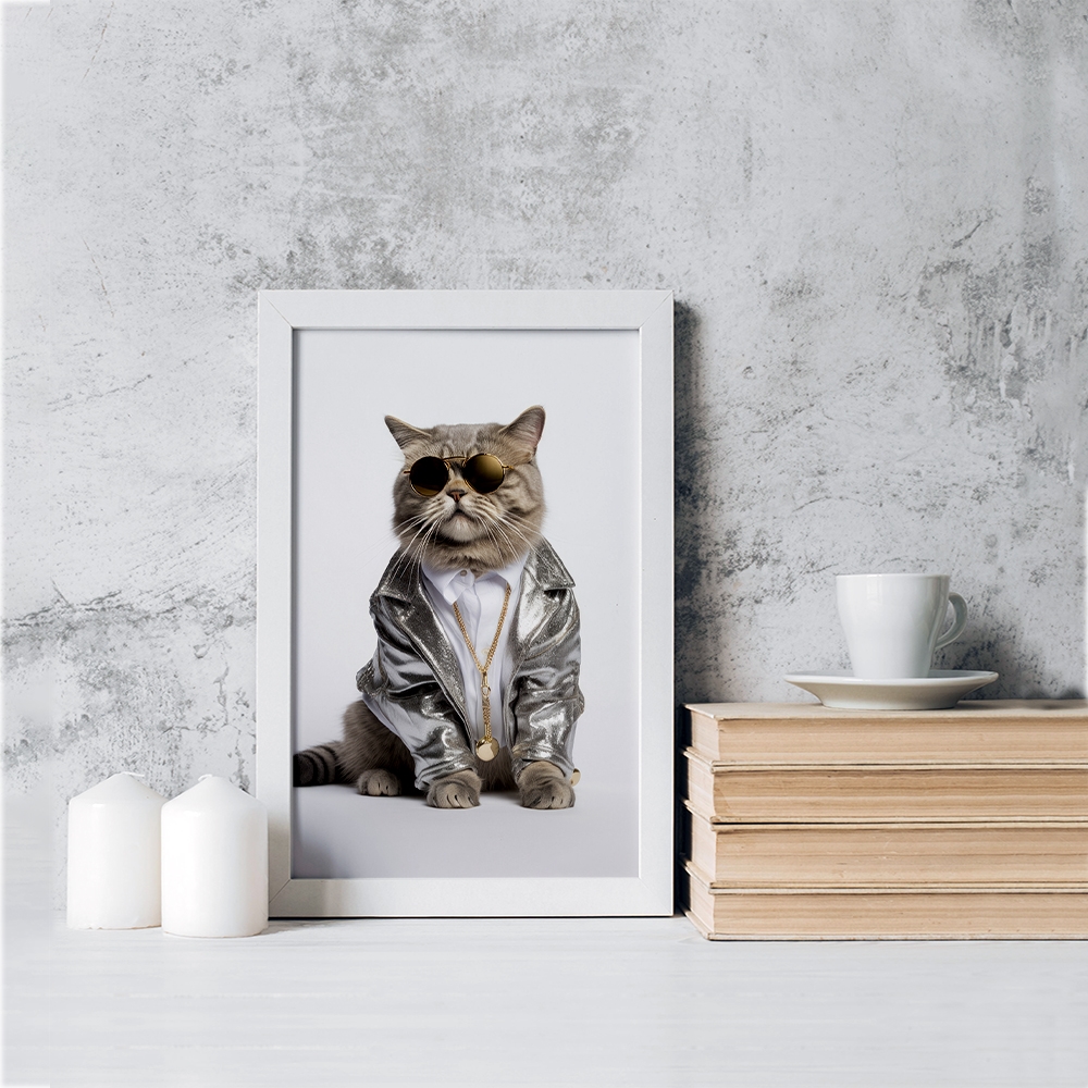 تابلو یا قاب عکس گربه بامزه خندالو در ابعاد مختلف با استفاده از بهترین برند پروفیل پی وی سی دو سانتی متری بسیار مرغوب، تولید شده اند و در مونتاژ و نصب آنها نهایت دقت در قرارگیری هر چه دقیق تر لبه ها به یکدیگر صورت گرفته است. همچنین در پشت قاب ها گیره ای برای اتصال راحت به دیوار تعبیه شده است.