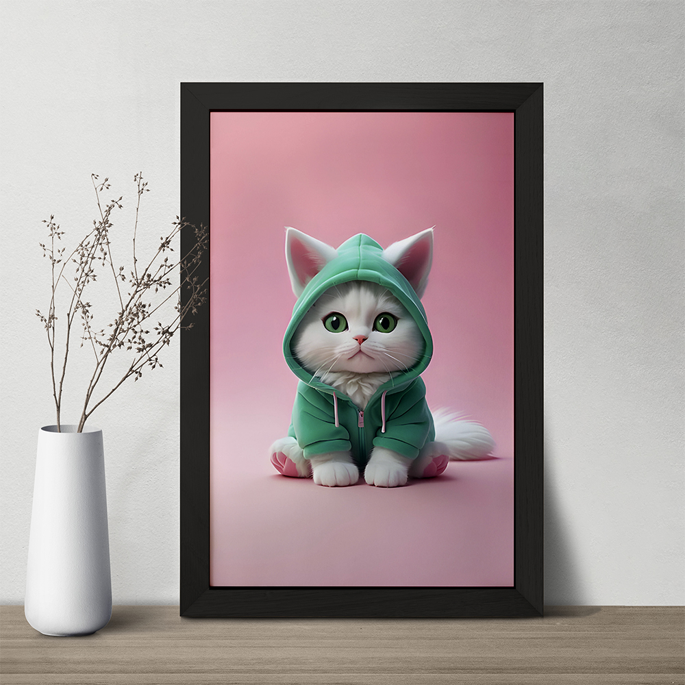 تابلو یا قاب عکس گربه بامزه خندالو در ابعاد مختلف با استفاده از بهترین برند پروفیل پی وی سی دو سانتی متری بسیار مرغوب، تولید شده اند و در مونتاژ و نصب آنها نهایت دقت در قرارگیری هر چه دقیق تر لبه ها به یکدیگر صورت گرفته است. همچنین در پشت قاب ها گیره ای برای اتصال راحت به دیوار تعبیه شده است.