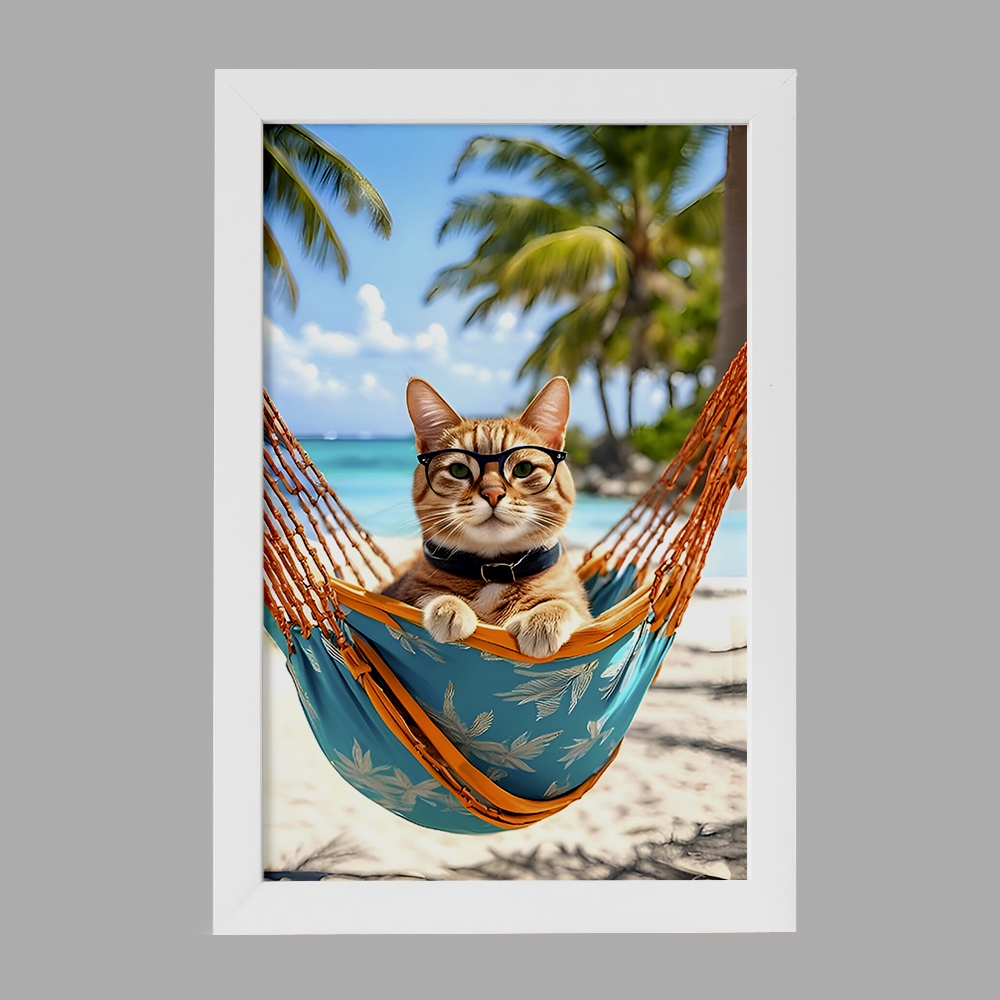 تابلو یا قاب عکس گربه بامزه خندالو در ابعاد مختلف با استفاده از بهترین برند پروفیل پی وی سی دو سانتی متری بسیار مرغوب، تولید شده اند و در مونتاژ و نصب آنها نهایت دقت در قرارگیری هر چه دقیق تر لبه ها به یکدیگر صورت گرفته است. همچنین در پشت قاب ها گیره ای برای اتصال راحت به دیوار تعبیه شده است.