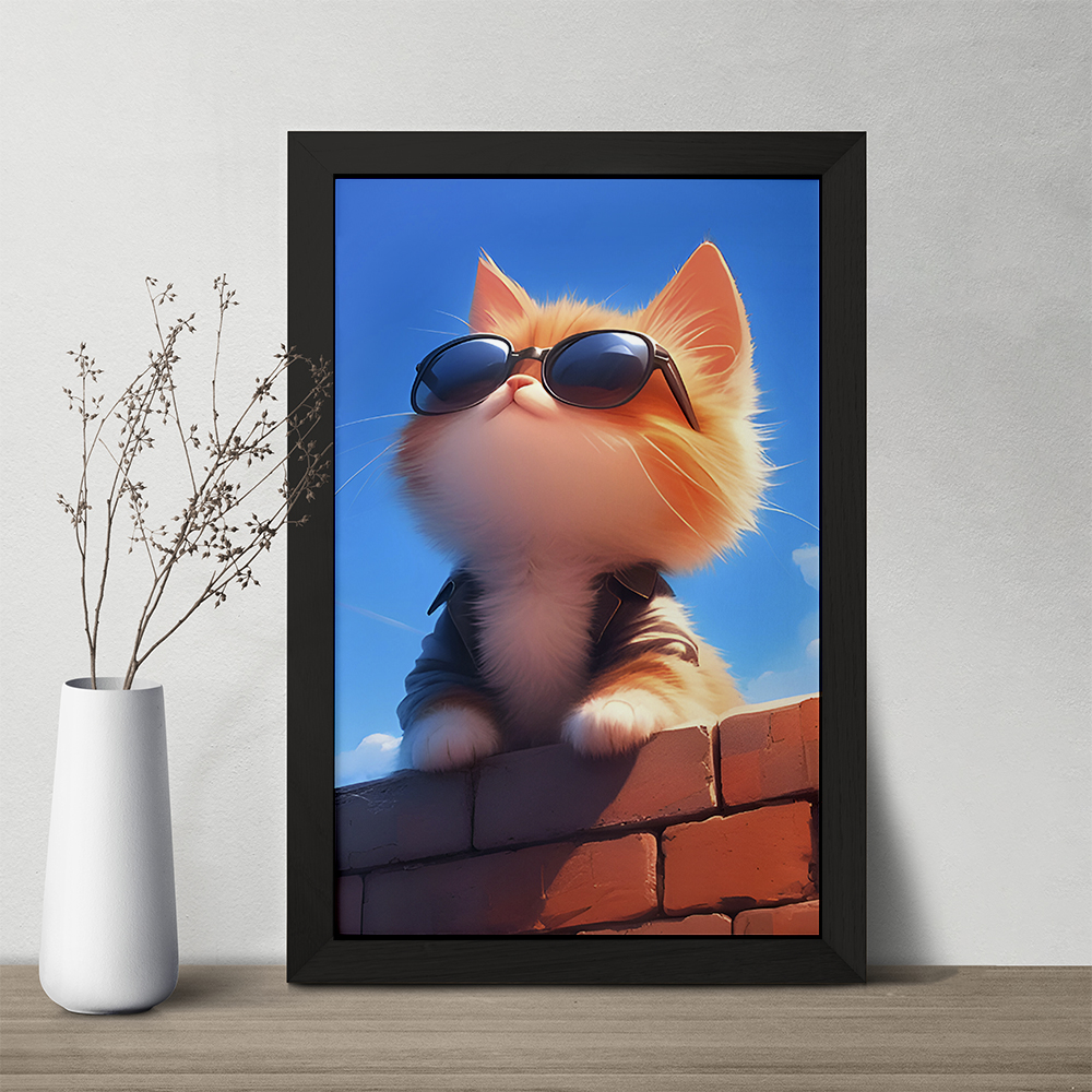 تابلو یا قاب عکس گربه بامزه خندالو در ابعاد مختلف با استفاده از بهترین برند پروفیل پی وی سی دو سانتی متری بسیار مرغوب، تولید شده اند و در مونتاژ و نصب آنها نهایت دقت در قرارگیری هر چه دقیق تر لبه ها به یکدیگر صورت گرفته است. همچنین در پشت قاب ها گیره ای برای اتصال راحت به دیوار تعبیه شده است.