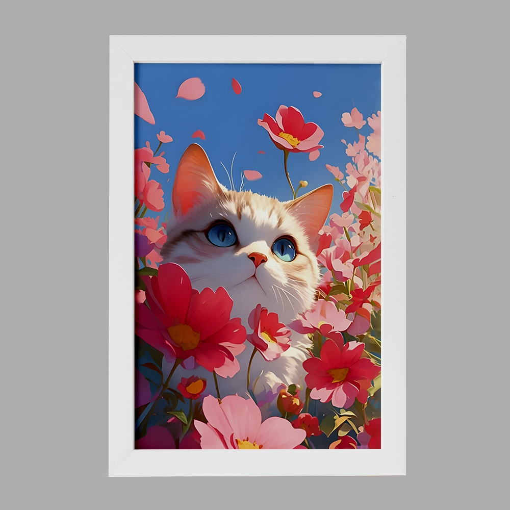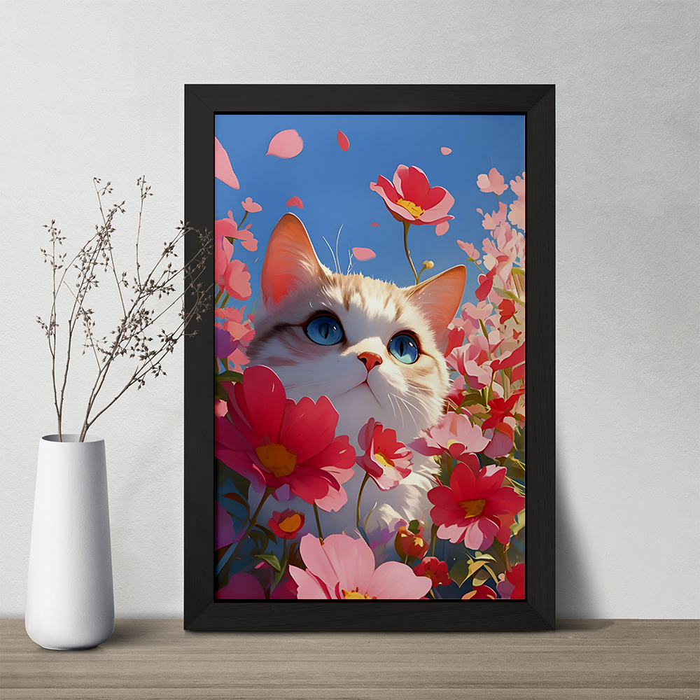 تابلو یا قاب عکس گربه بامزه خندالو در ابعاد مختلف با استفاده از بهترین برند پروفیل پی وی سی دو سانتی متری بسیار مرغوب، تولید شده اند و در مونتاژ و نصب آنها نهایت دقت در قرارگیری هر چه دقیق تر لبه ها به یکدیگر صورت گرفته است. همچنین در پشت قاب ها گیره ای برای اتصال راحت به دیوار تعبیه شده است.