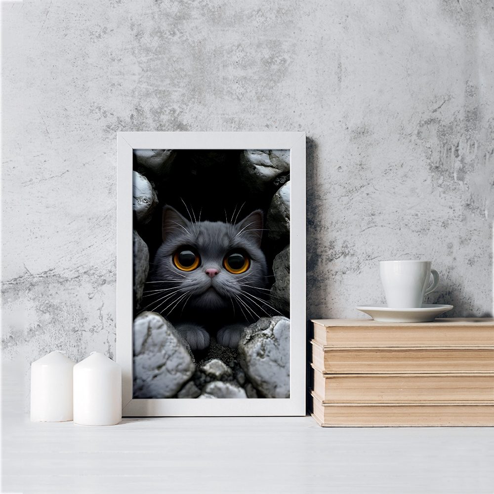 تابلو یا قاب عکس گربه بامزه خندالو در ابعاد مختلف با استفاده از بهترین برند پروفیل پی وی سی دو سانتی متری بسیار مرغوب، تولید شده اند و در مونتاژ و نصب آنها نهایت دقت در قرارگیری هر چه دقیق تر لبه ها به یکدیگر صورت گرفته است. همچنین در پشت قاب ها گیره ای برای اتصال راحت به دیوار تعبیه شده است.