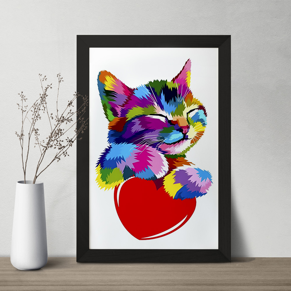 تابلو یا قاب عکس گربه رنگی خندالو در ابعاد مختلف با استفاده از بهترین برند پروفیل پی وی سی دو سانتی متری بسیار مرغوب، تولید شده اند و در مونتاژ و نصب آنها نهایت دقت در قرارگیری هر چه دقیق تر لبه ها به یکدیگر صورت گرفته است. همچنین در پشت قاب ها گیره ای برای اتصال راحت به دیوار تعبیه شده است. چاپ طرح تابلوی گربه رنگی با بالاترین کیفیت بوسیله چاپگرهای دیجیتال شش رنگ و کاغذ با کیفیت عکاسی انجام شده و بر روی آن شیشه ای با کیفیت و شفاف در سطح قاب قرار گرفته که از کاغذ عکس محافظت میکند. بسته بندی تابلوها جعبه های مقاوم و محکمی بوده که علاوه بر محافظتی که از بدنه قاب می کند، ظاهر جذابی دارد و تابلوی گربه رنگی را بدل به محصولی مناسب هدیه کرده است. تابلوهای خندالو با تنوع طرحی بسیار بالا شامل تابلو های دکوراتیو قابل استفاده در اتاق کودک، محل کار و منازل می باشد که سلیقه هر مخاطبی را پوشش می دهد، ضمن اینکه امکان تعویض عکس موجود در قاب وجود داشته و می توان عکس های خانوادگی و … را نیز در آن قرار داد.