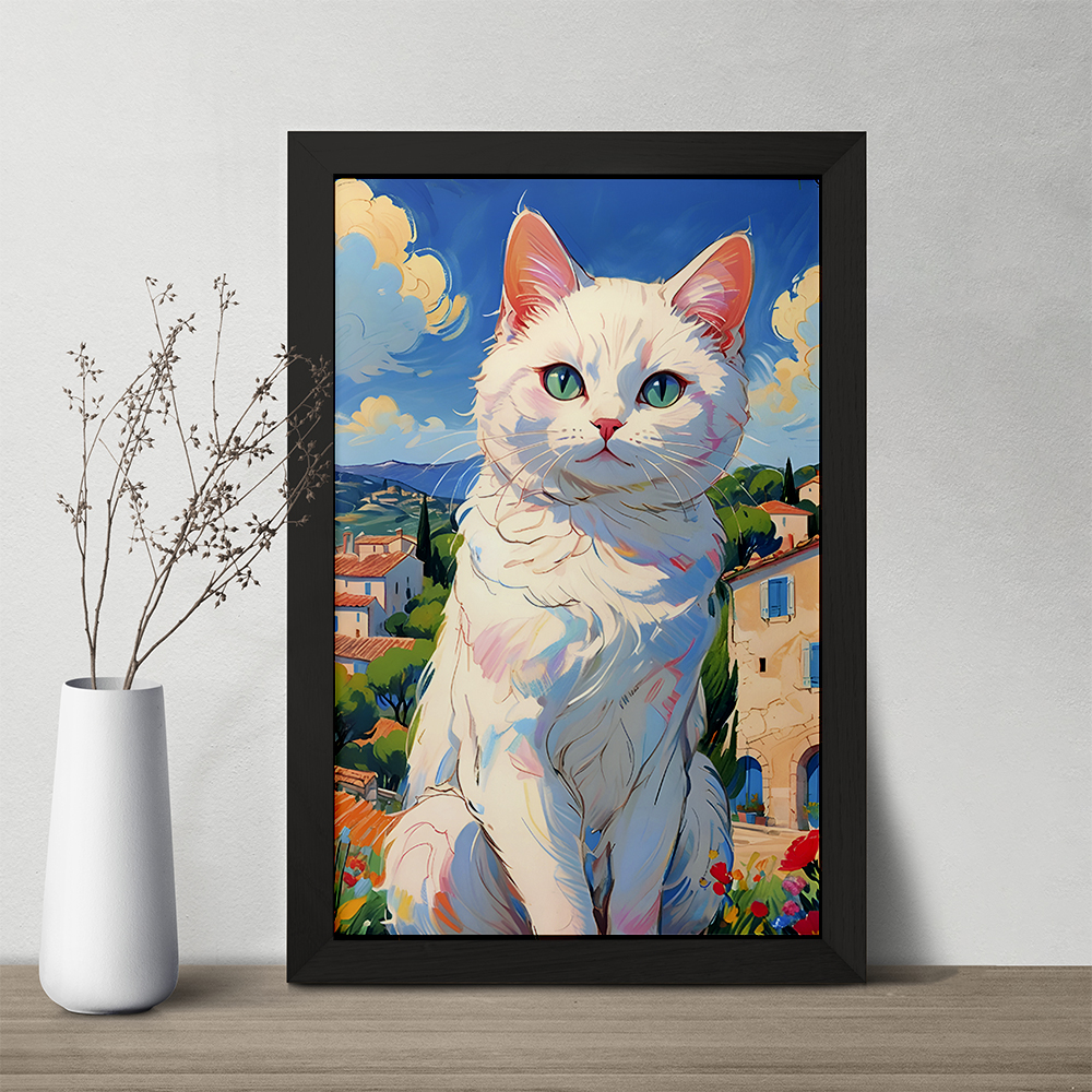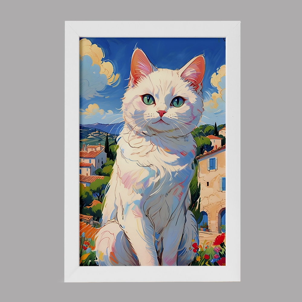 تابلو یا قاب عکس گربه سفید خندالو در ابعاد مختلف با استفاده از بهترین برند پروفیل پی وی سی دو سانتی متری بسیار مرغوب، تولید شده اند و در مونتاژ و نصب آنها نهایت دقت در قرارگیری هر چه دقیق تر لبه ها به یکدیگر صورت گرفته است. همچنین در پشت قاب ها گیره ای برای اتصال راحت به دیوار تعبیه شده است. چاپ طرح تابلوی گربه سفید با بالاترین کیفیت بوسیله چاپگرهای دیجیتال شش رنگ و کاغذ با کیفیت عکاسی انجام شده و بر روی آن شیشه ای با کیفیت و شفاف در سطح قاب قرار گرفته که از کاغذ عکس محافظت میکند. بسته بندی تابلوها جعبه های مقاوم و محکمی بوده که علاوه بر محافظتی که از بدنه قاب می کند، ظاهر جذابی دارد و تابلوی گربه سفید را بدل به محصولی مناسب هدیه کرده است. تابلوهای خندالو با تنوع طرحی بسیار بالا شامل تابلو های دکوراتیو قابل استفاده در اتاق کودک، محل کار و منازل می باشد که سلیقه هر مخاطبی را پوشش می دهد، ضمن اینکه امکان تعویض عکس موجود در قاب وجود داشته و می توان عکس های خانوادگی و … را نیز در آن قرار داد.