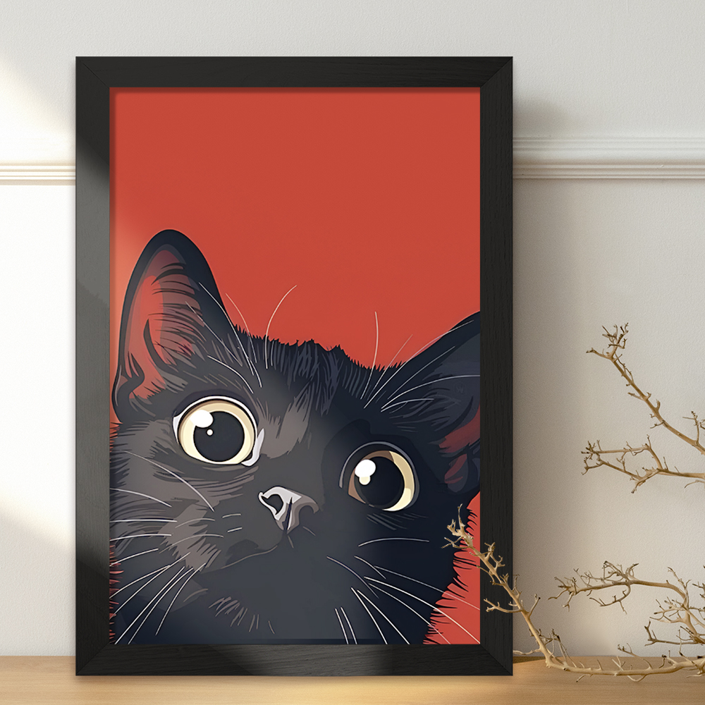 تابلو یا قاب عکس گربه سیاه خندالو در ابعاد مختلف با استفاده از بهترین برند پروفیل پی وی سی دو سانتی متری بسیار مرغوب، تولید شده اند و در مونتاژ و نصب آنها نهایت دقت در قرارگیری هر چه دقیق تر لبه ها به یکدیگر صورت گرفته است. همچنین در پشت قاب ها گیره ای برای اتصال راحت به دیوار تعبیه شده است.